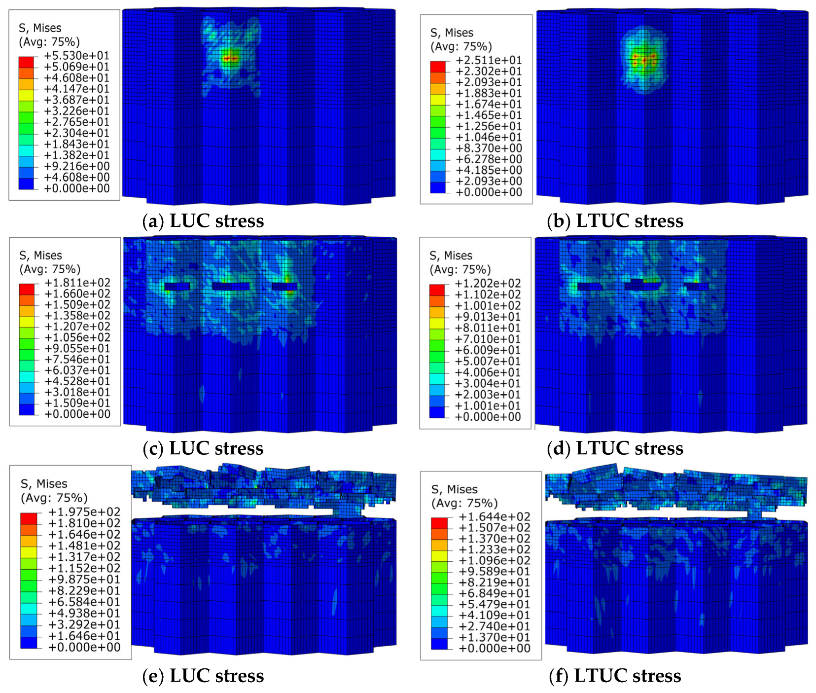From the above analysis, it can be seen that the average error of the simulation and experimental results under the two processing methods is between 10% and 20%. The local differences exceeding 30% are mainly due to the mesoscopic defects, boundary uncertainties and differences in measurement definitions between the ideal model and the experiment. The above results confirm the accuracy of the simulation model.