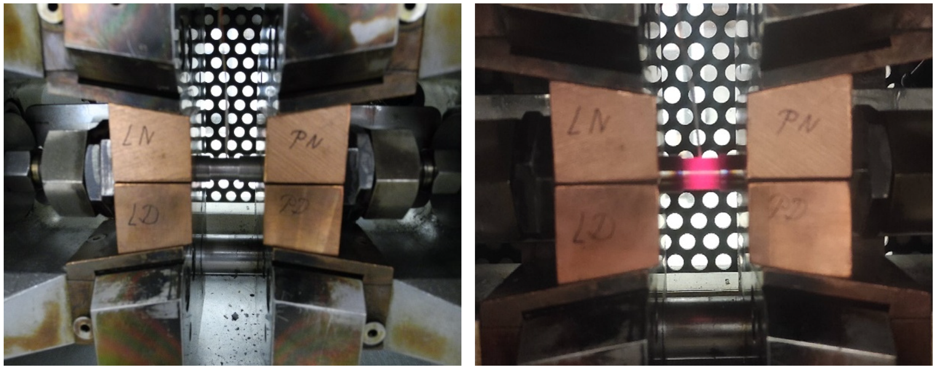 - Santhakumari, A.; Senthilkumar, T.; Mahadevan, G.; Ramasamy, N. Interface and microstructural characteristics of titanium and 304 stainless steel dissimilar joints by upset butt welding using a Gleeble thermo mechanical simulator. J. Mater. Res. Technol. 2023, 26, 7460–7470. [Google Scholar] [CrossRef]