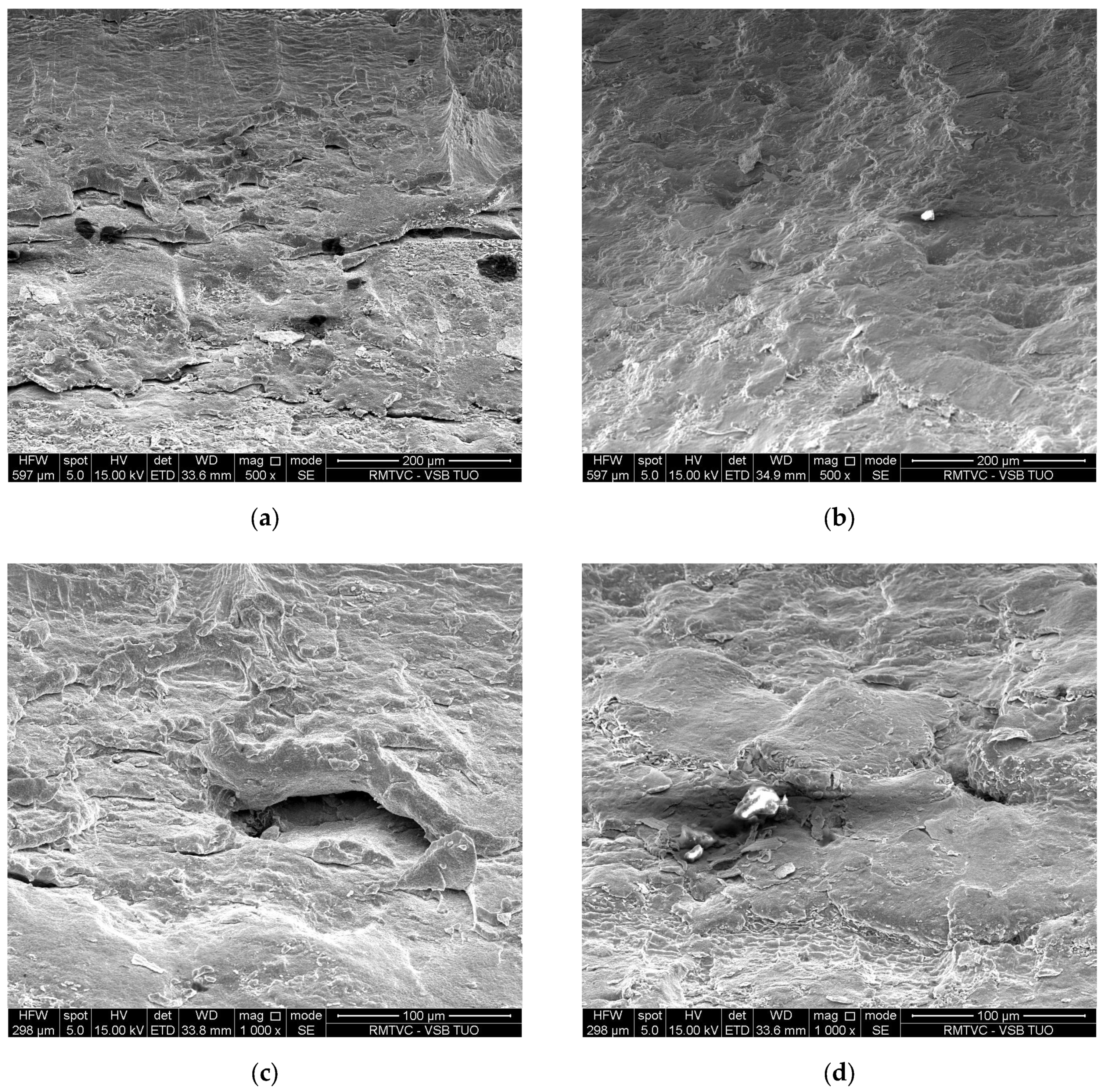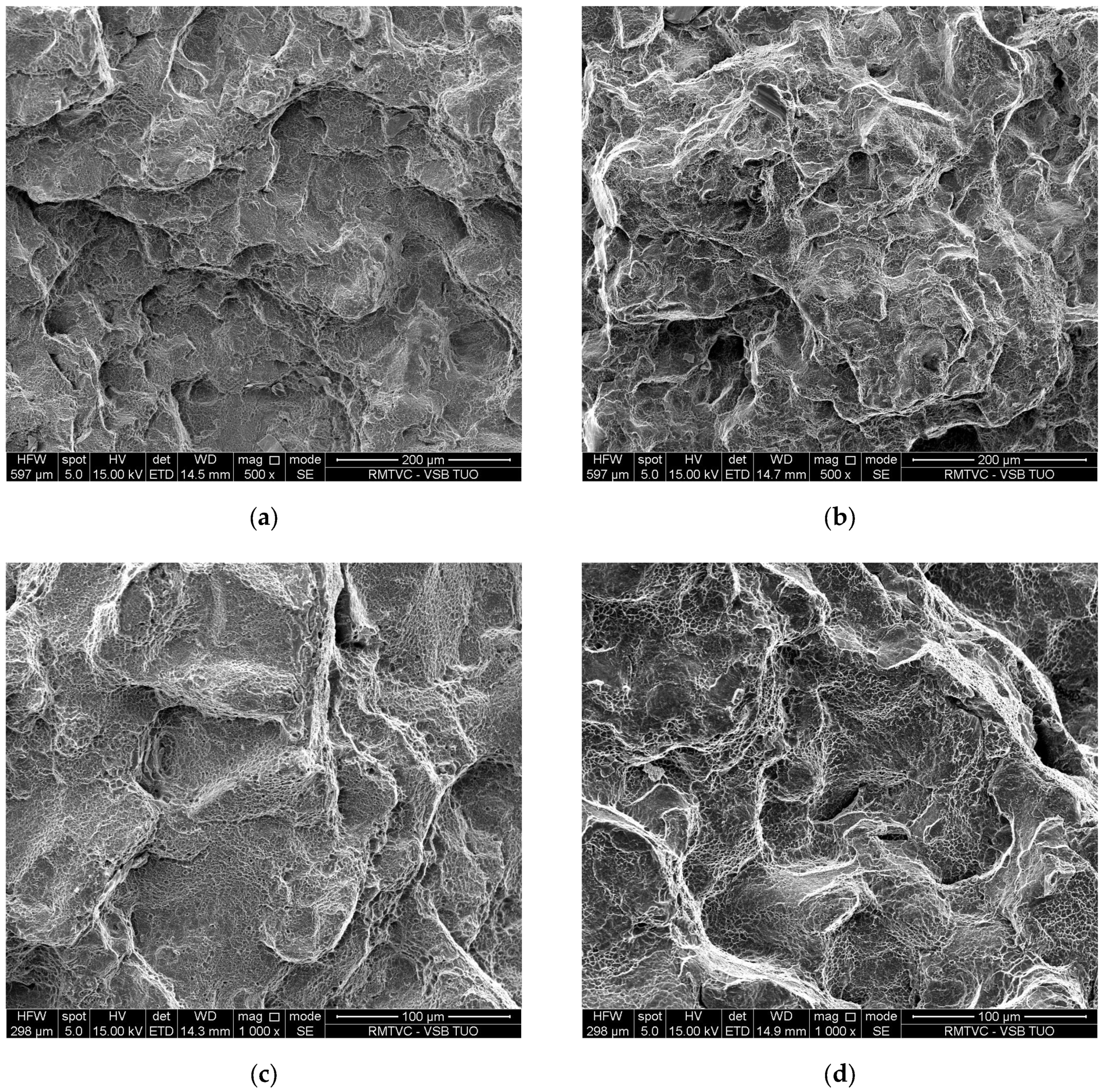 - The highest creep resistance for both investigated materials (after vacuum degassing and electro slag remelting technology) is achieved at temperatures of 550 °C and below. No loss of cohesion was observed even after reaching 55 cycles.