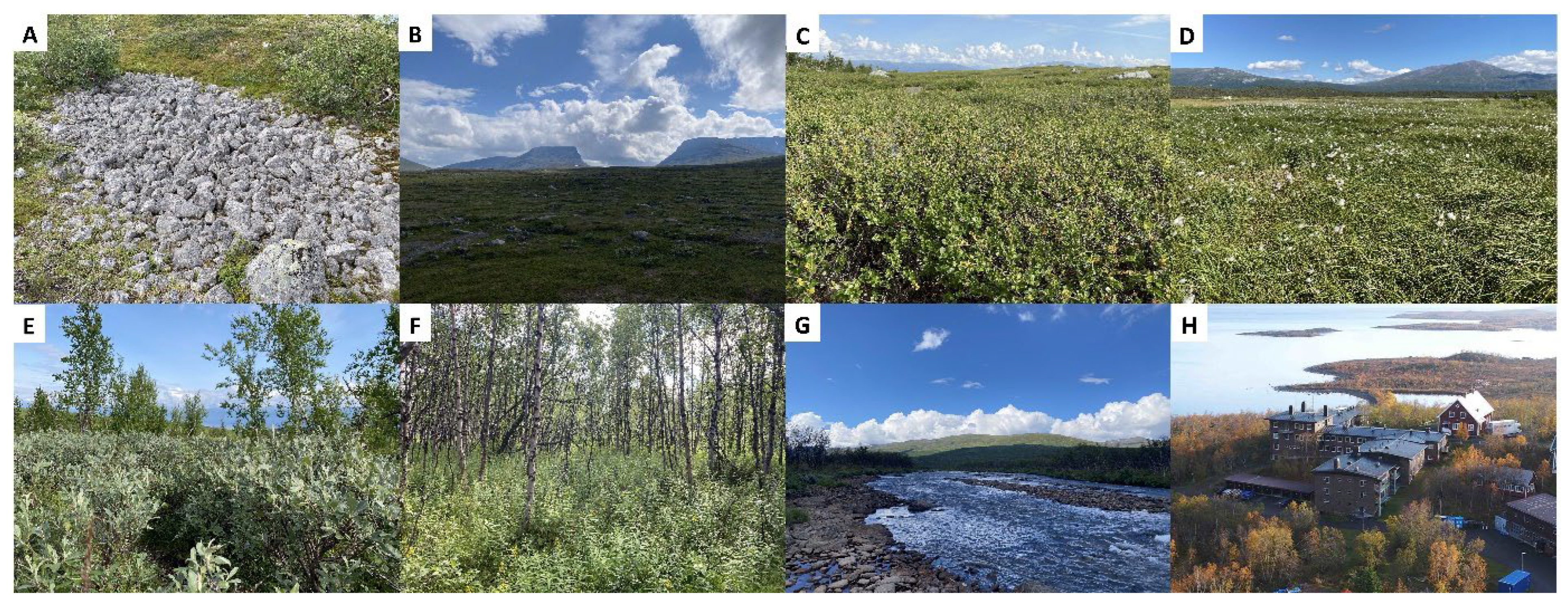 - Scharn, R.; Negri, I.S.; Sundqvist, M.K.; Løkken, J.O.; Bacon, C.D.; Antonelli, A.; Hofgaard, A.; Nilsson, R.H.; Björk, R.G. Limited Decadal Growth of Mountain Birch Saplings Has Minor Impact on Surrounding Tundra Vegetation. Ecol. Evol. 2022, 12, e9028. [Google Scholar] [CrossRef] [PubMed]