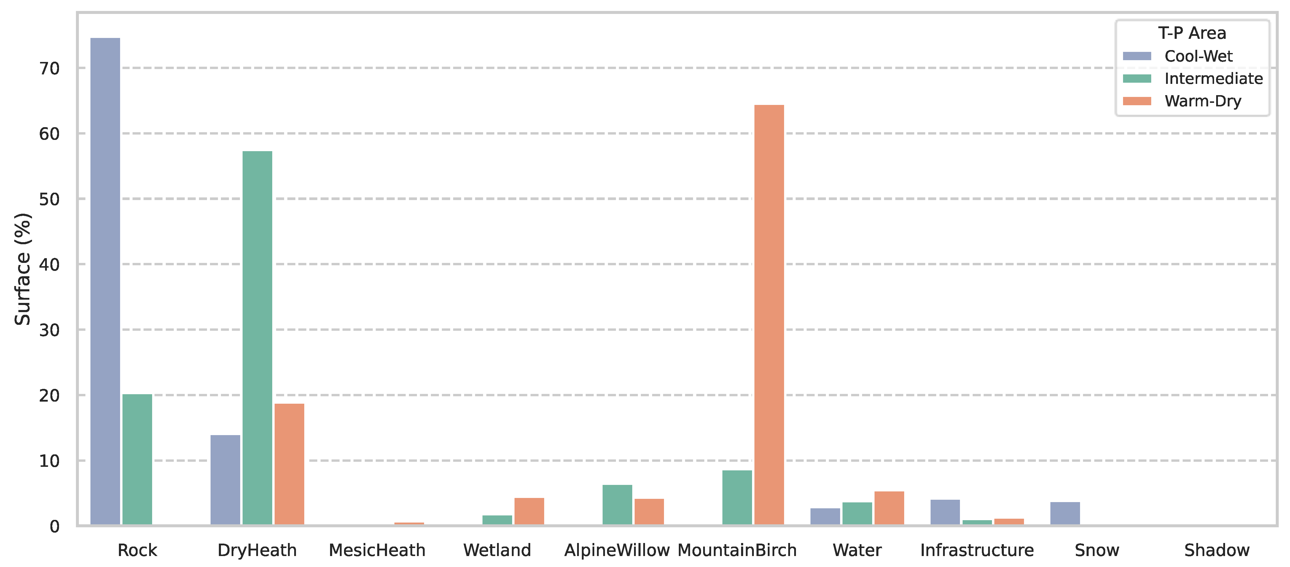 | Class Name | Rock | Dry Heath | Mesic Heath | Wetland | Alpine Willow | Mountain Birch | Water | Infrastruct. | |