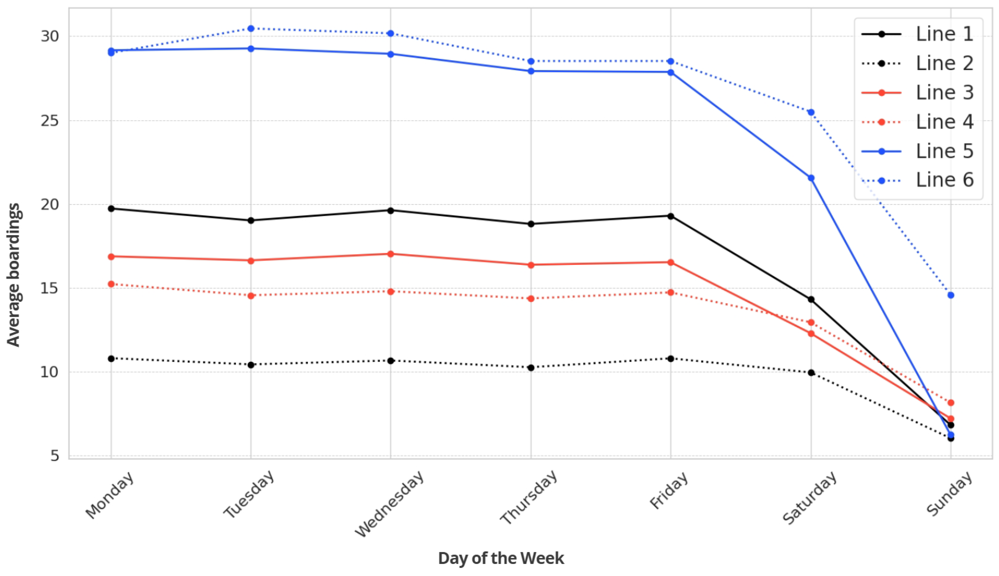 Highly populated cities exemplify the need for a detailed analysis of passenger boarding demand. As urban populations grow, the complexity of public transport networks increases, requiring careful planning to ensure that operations effectively meet passengers’ mobility needs. Understanding and addressing the unique challenges faced by densely populated cities is therefore crucial for developing data-driven strategies that enhance the efficiency, equity, and sustainability of public transportation systems worldwide.