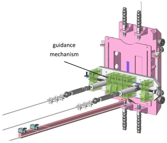 In this system, the submerged portion primarily comprises the ropes and the vehicle. Since the linear density of the adopted rope is 0.087 kg/m, its mass is much smaller than that of the system. Therefore, the influence of the rope on the system is neglected herein, and only the added water mass of the underwater vehicle is discussed. Owing to the vehicle’s guidance mechanism (shown in Figure 4), its motion is constrained to a single direction during operation. Furthermore, this study considers only the vehicle’s motion in the towing direction. Consequently, the vehicle’s dynamics can be treated as a single-degree-of-freedom system. Based on established methods for calculating added mass in ship and marine engineering [21], the added mass for the vehicle undergoing longitudinal unsteady motion is given by: