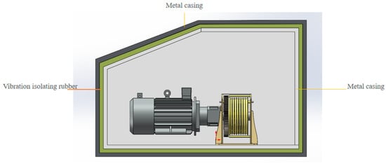 In the equation, α and β represent the Rayleigh damping coefficients. Given that this drag system operates in a still water environment and its transmission mechanism is dry-sealed, mechanical damping accounts for a large proportion and thus constitutes a key component of the system damping. Furthermore, both this drag system and the traction elevator are rigid-flexible-coupled closed-loop systems, and their transmission modes, structural configurations, and vibration generation mechanisms are analogous. Therefore, research findings in the field of elevator dynamics provide a reference for the present study, and α is thus set to 0.01 herein.