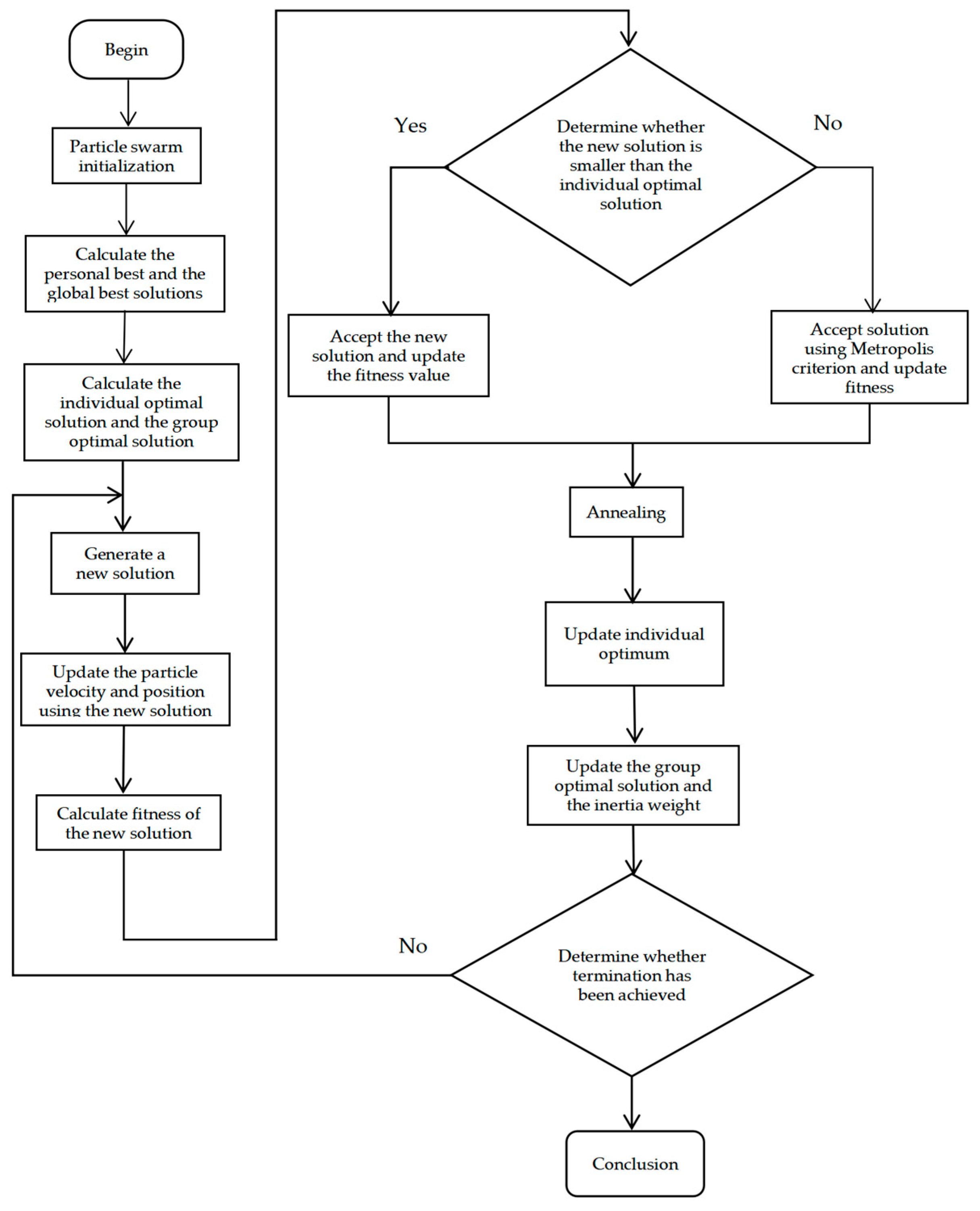 Figure 13. Flowchart of the Simulated Annealing Particle Swarm Optimization Algorithm.