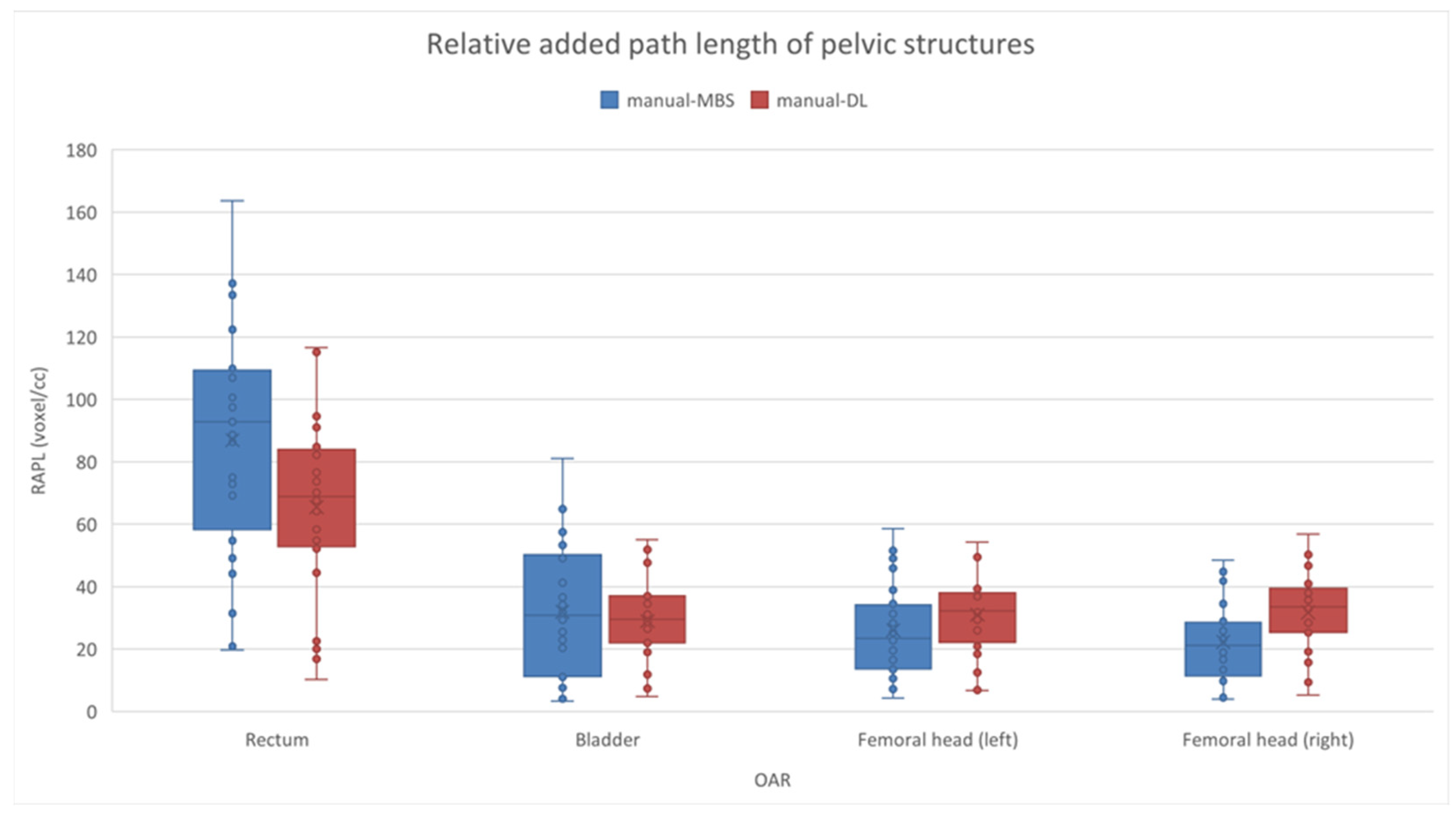 3 voxels), while with RAPL, the worst results were obtained with the MBS-segmented rectum (9.29 [7.39–10.48] × 10 voxels/cc).