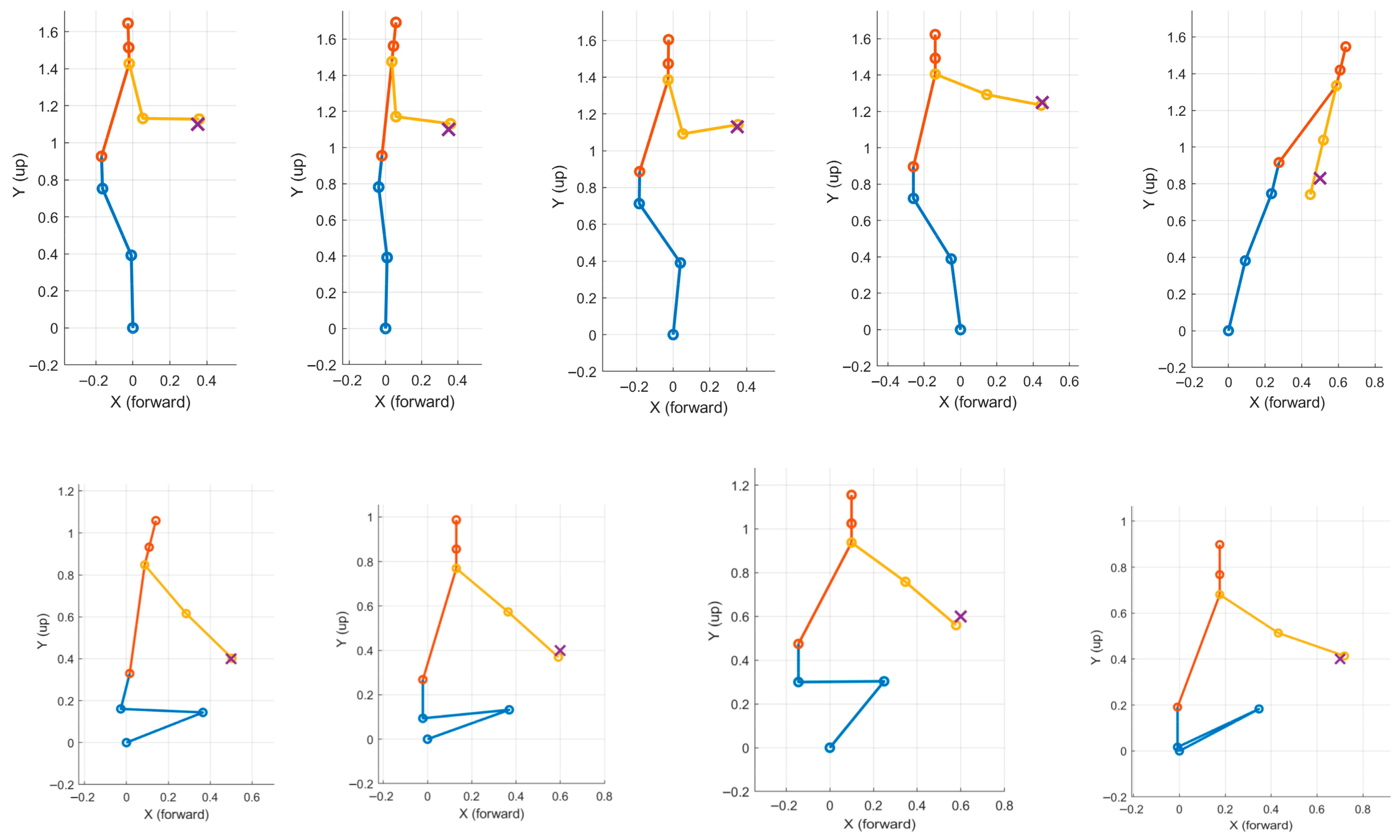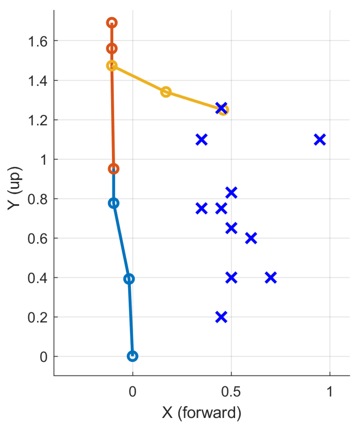 Figure 2 illustrates the reachable hand positions extracted from the reference publications and one associated stick-figure posture.