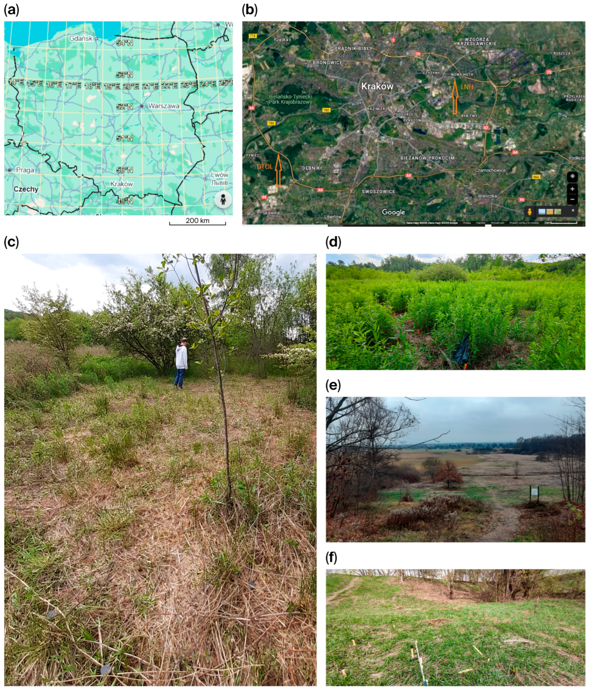 - Budnik, A.; Kupiec, I.; Kwiatek, A.; Kasprzyk, G. Miejscowy Plan Zagospodarowania Przestrzennego Obszaru Łąki Nowohuckie. Prognoza Oddziaływania na środowisko; Urząd Miasta Krakowa, Biuro Planowania Przestrzennego, Pracownia Branżowa: Kraków, Poland, 2018; p. 128. [Google Scholar]
