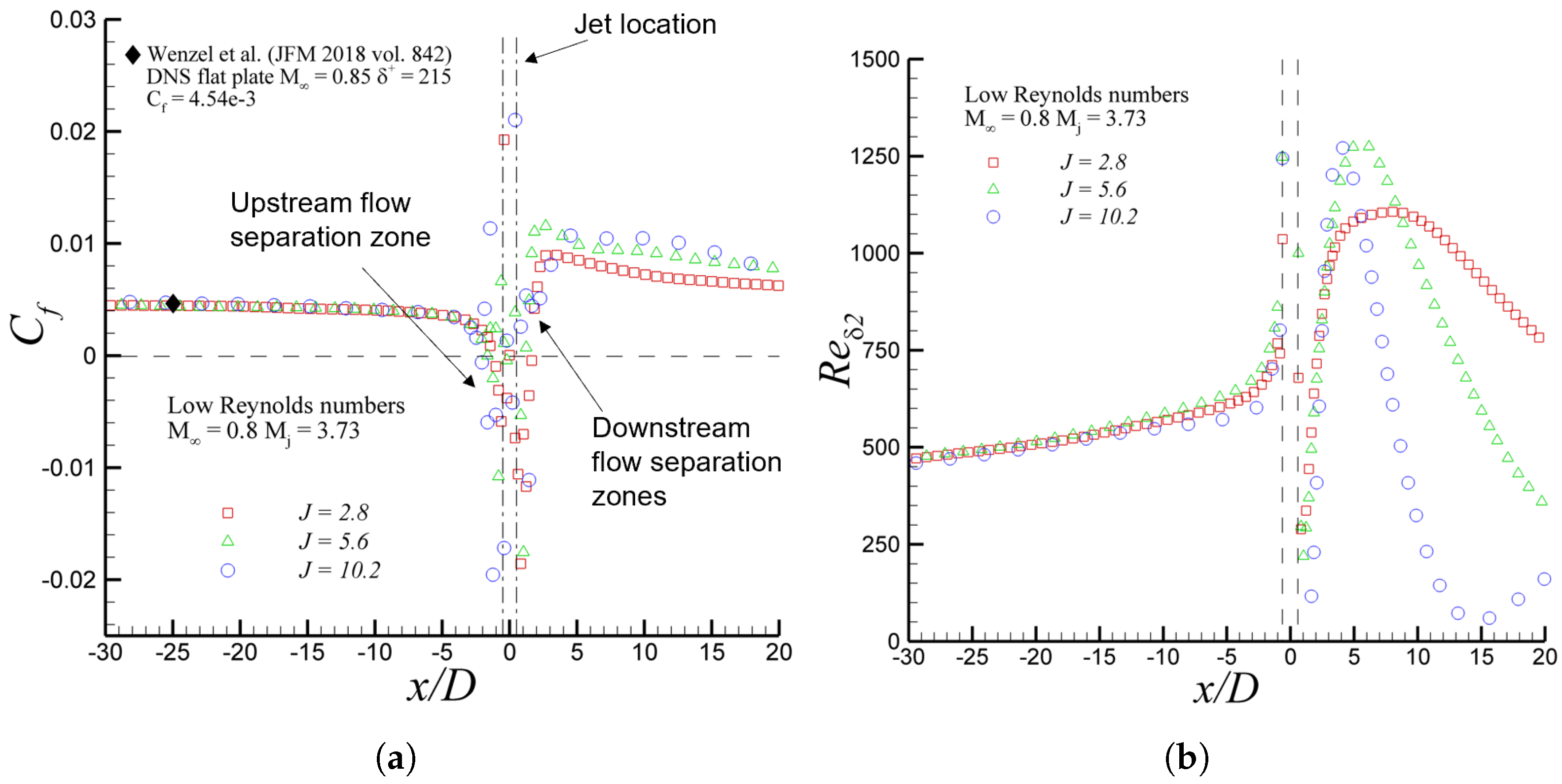 Importantly, comparisons with higher Reynolds-number experimental data by Beresh et al. [