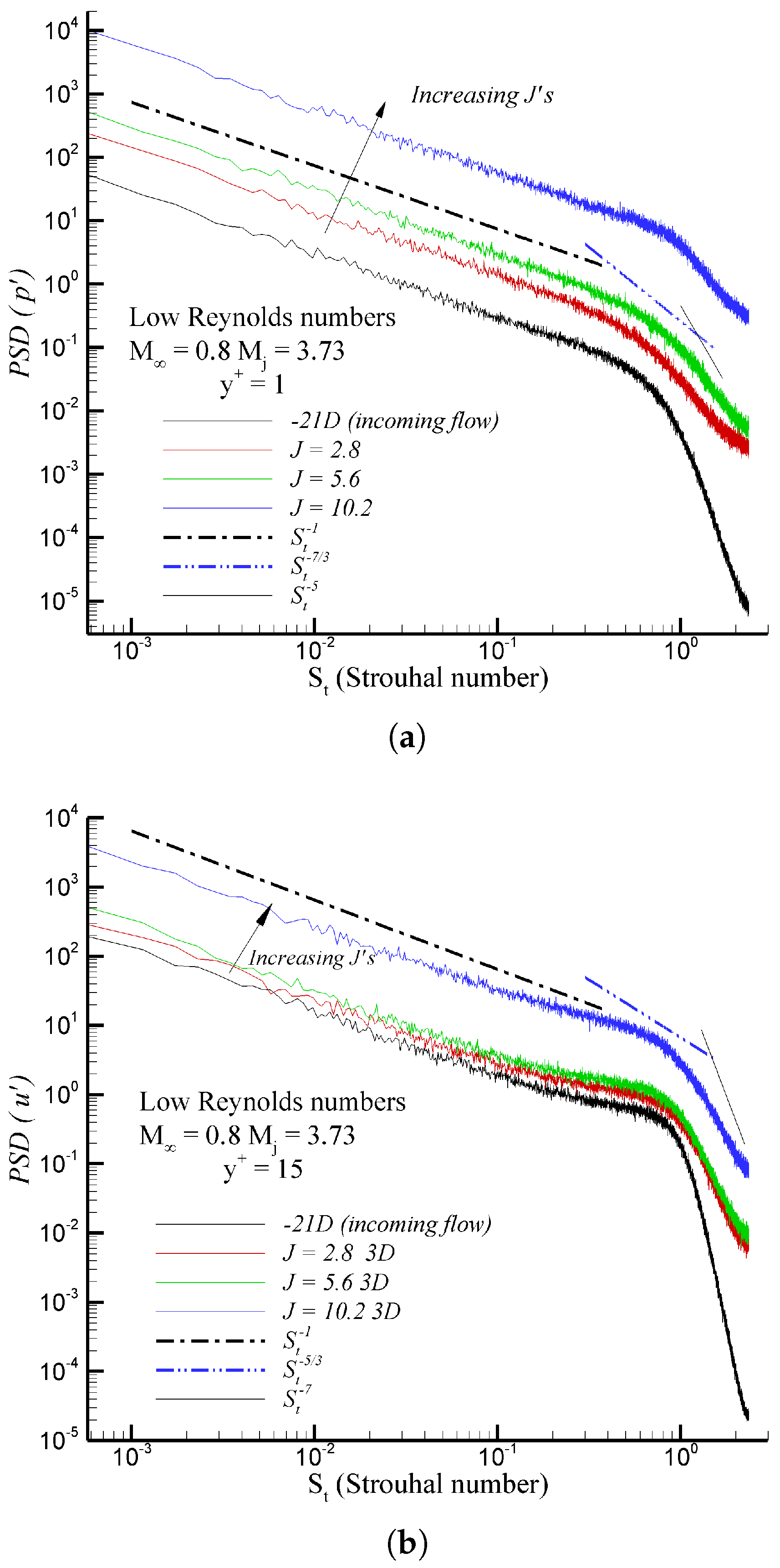 Figure 5 illustrates the power spectral densities of flow fluctuations, namely