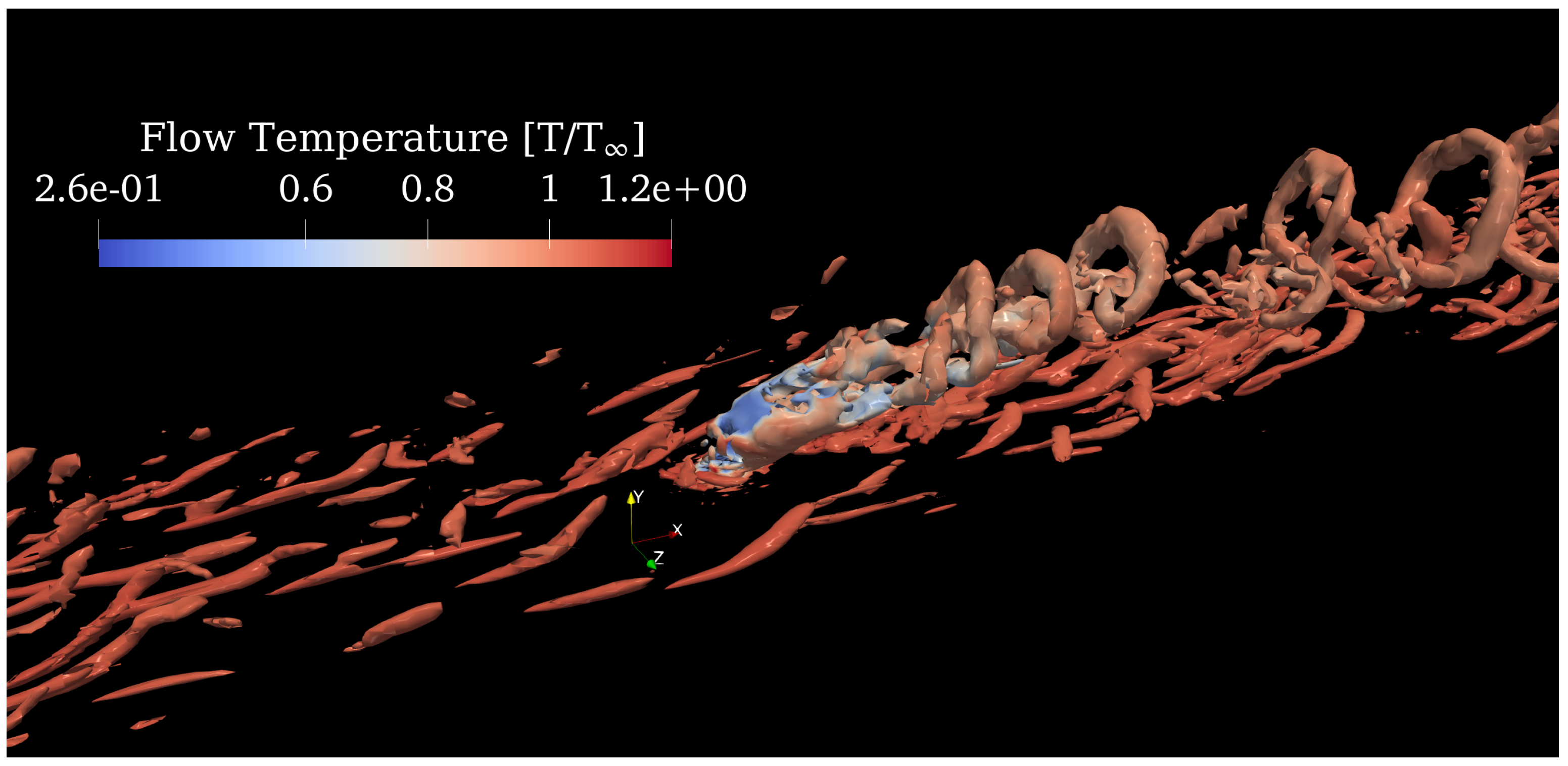 Figure 14). As a result, large-scale motions remain dynamically dominant over longer distances and modes, leading to a reduced separation between energetic scales and a narrower turbulence spectrum. In contrast, high-Reynolds-number experiments and large-eddy simulations report thinner shear layers, stronger velocity gradients, and earlier transition to small-scale turbulence, which accelerate vortex stretching and breakdown. These effects introduce a wider range of interacting spatial scales and redistribute energy across a broader frequency band. Despite these differences in structural scale and breakdown behavior, the primary instability mechanisms governing plume flapping and jet–crossflow interaction remain qualitatively similar, indicating that the Reynolds number primarily modulates the scale and temporal characteristics of the flow rather than the underlying dynamics.