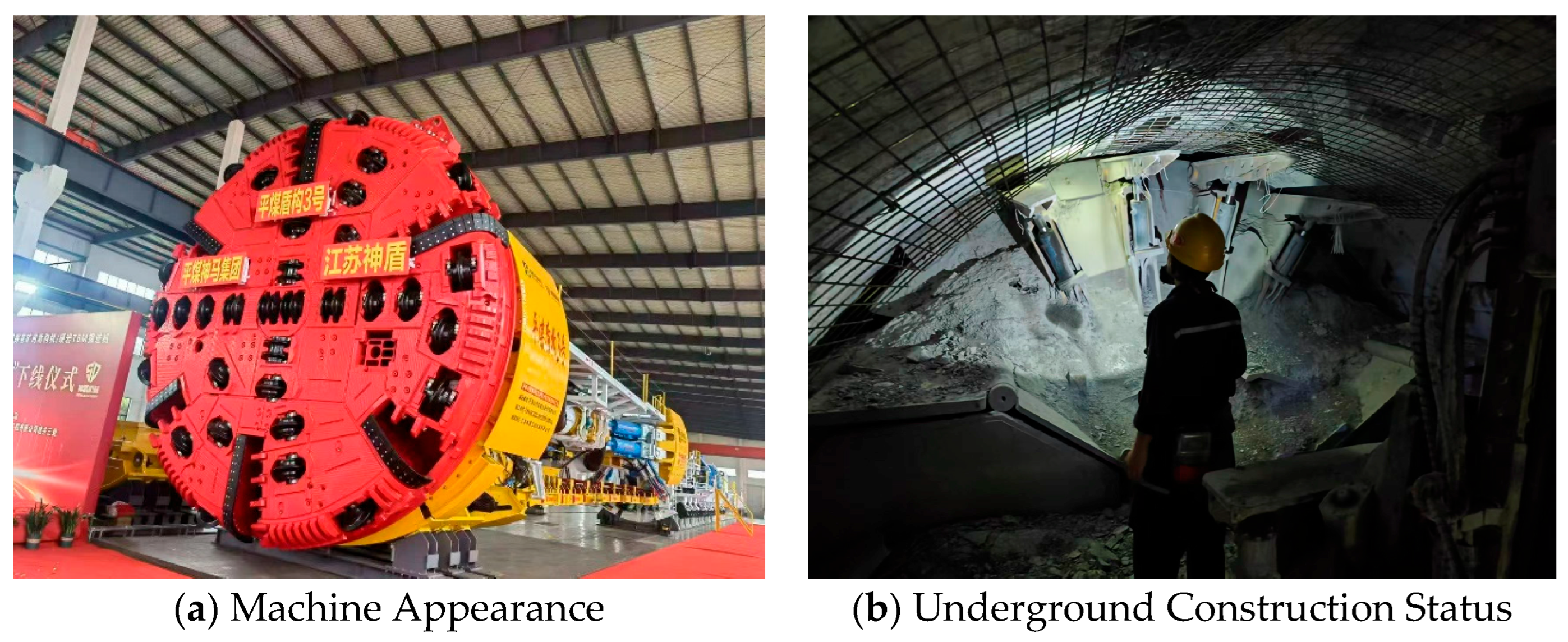 - Wang, H.; Zhou, C.; Bi, Q.; Zhu, H.; Ding, Z.; Zhang, C. Adaptive Modification of TBM Tunneling in Coal Mine Roadway and Disaster Control Technology for Complex Geological Conditions. Processes 2023, 11, 1389. [Google Scholar] [CrossRef]