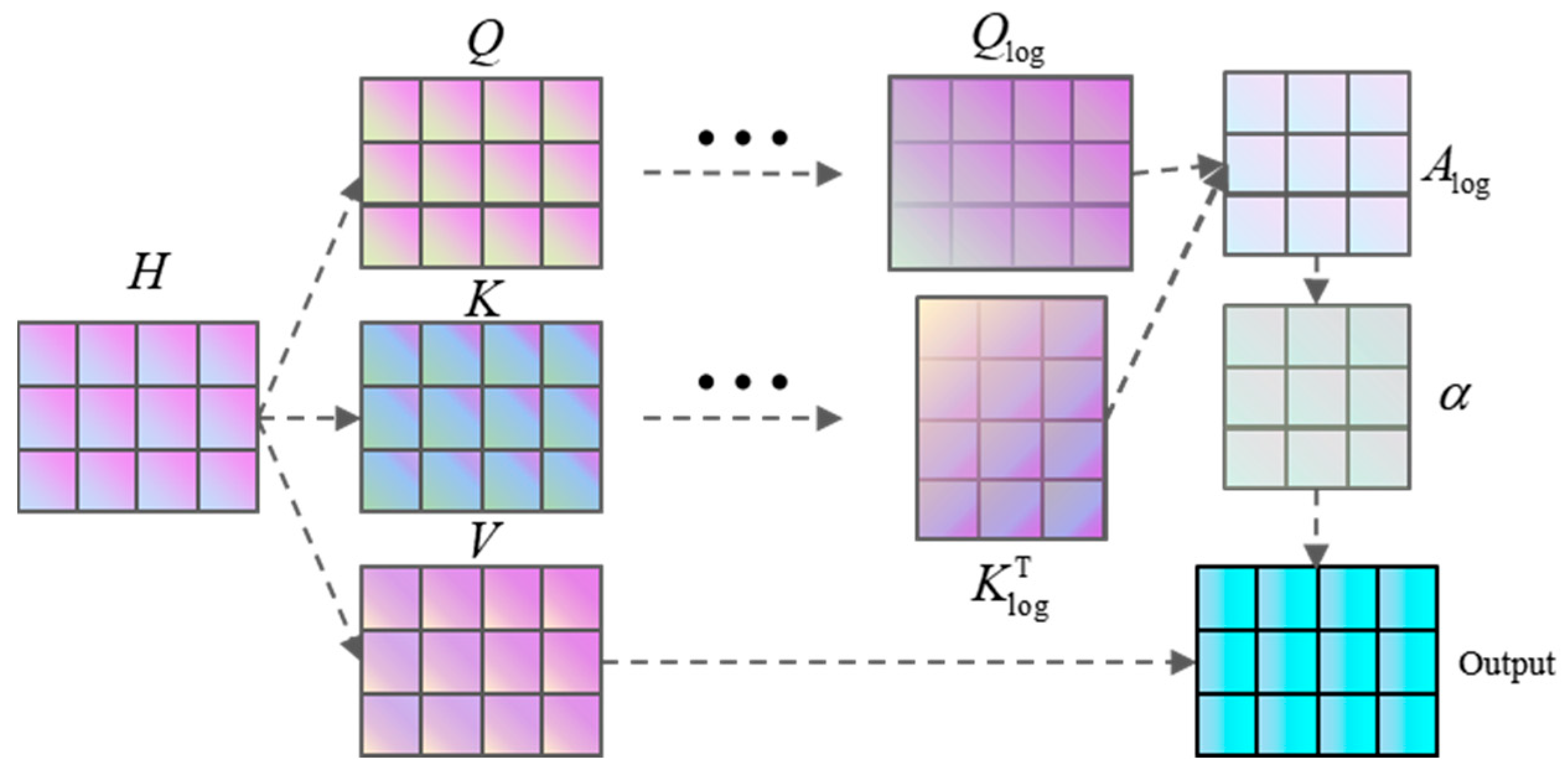 - The Softmax(·) function is applied to each row of Alog to produce a probability distribution.