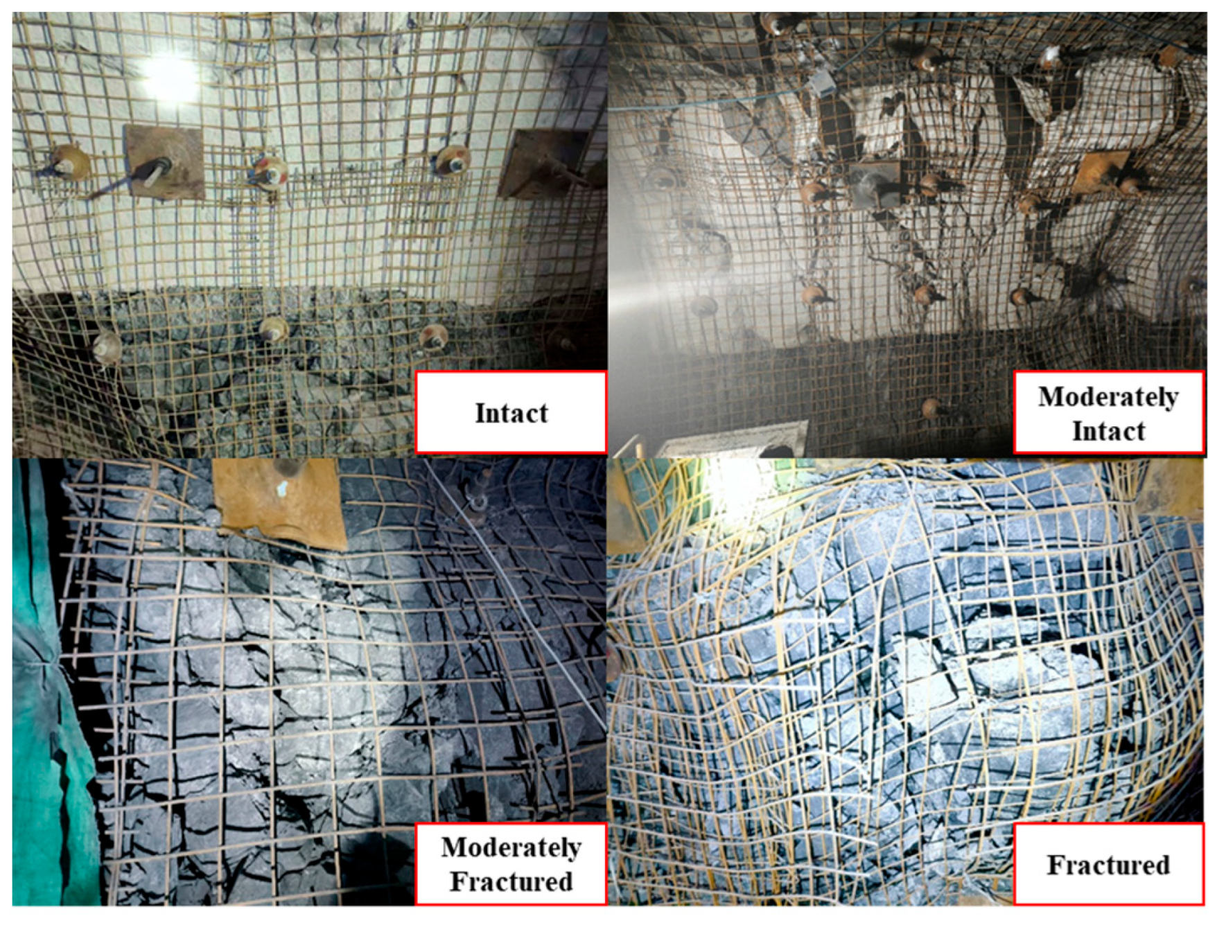 - Shen, B. Coal Mine Roadway Stability in Soft Rock: A Case Study. Rock Mech. Rock Eng. 2014, 47, 2225–2238. [Google Scholar] [CrossRef]