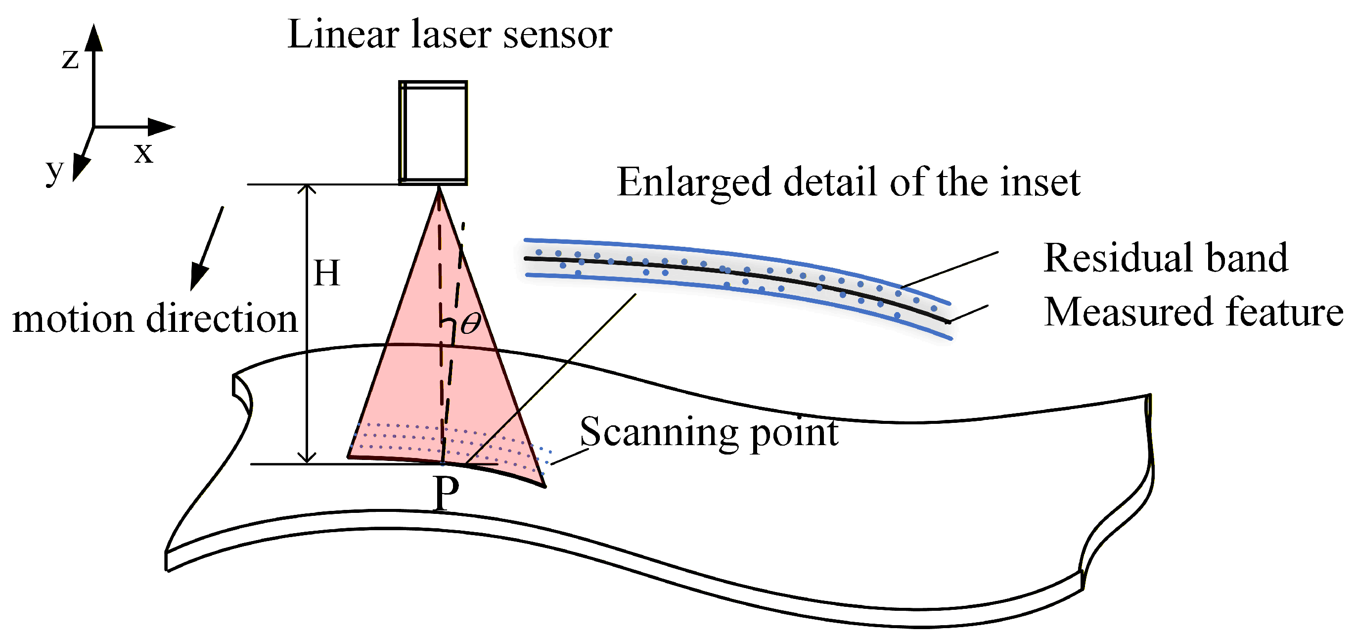 - Wang, Z.; Zhu, Z.; Yang, X.; Lei, Z. Research on inclination error between line laser sensor and workpiece surface. Instrum. Tech. Sens. 2023, 7, 17–21. [Google Scholar] [CrossRef]
