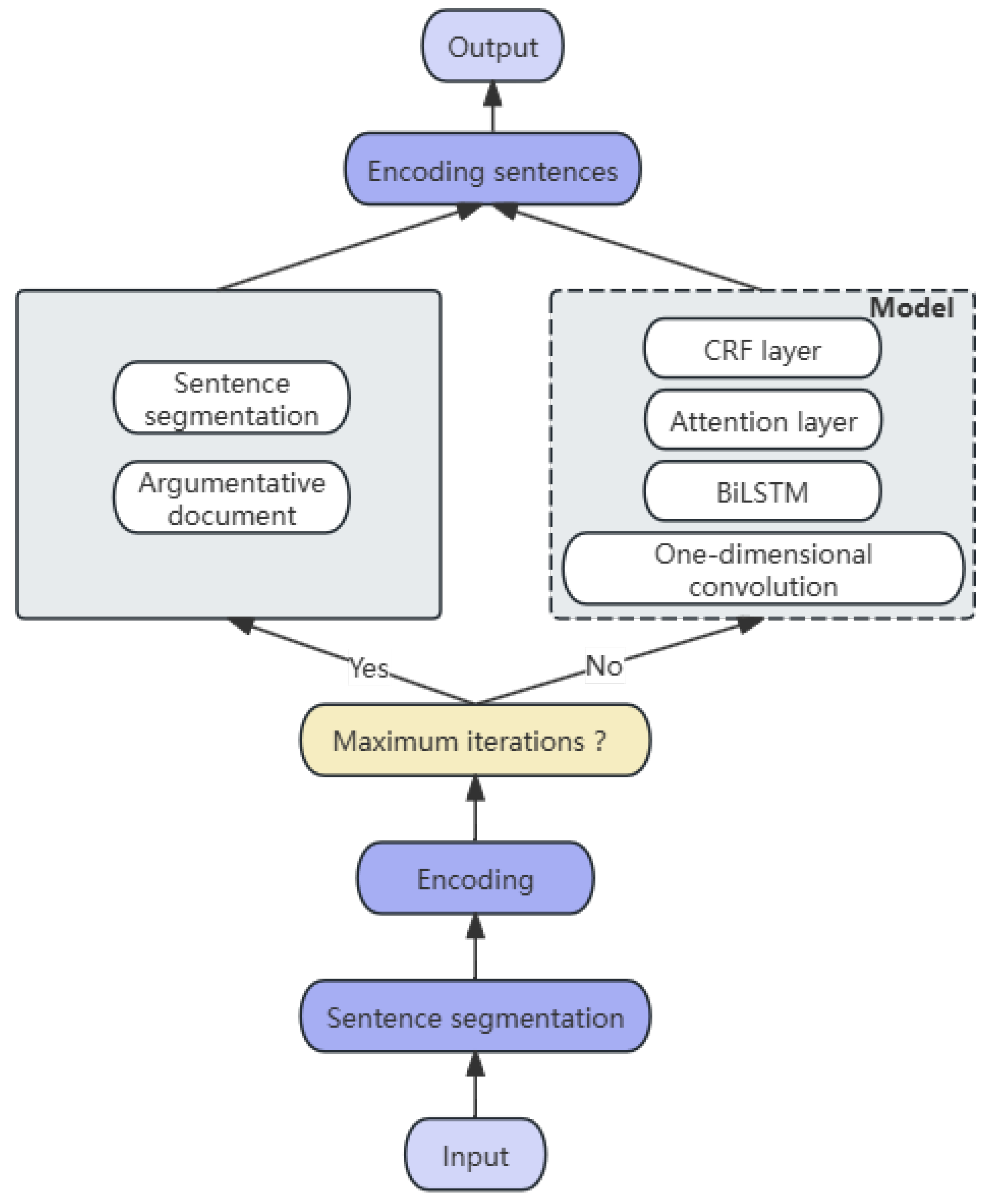 26] proposed a method that combines weighted features and the BiLSTM-Attention model for argument mining in EFL writing. This method generates dynamic word vectors and obtains sentence-level and article-level features through the BiLSTM and Attention mechanisms, thus annotating the article content according to the Toulmin model. Fromm et al. [