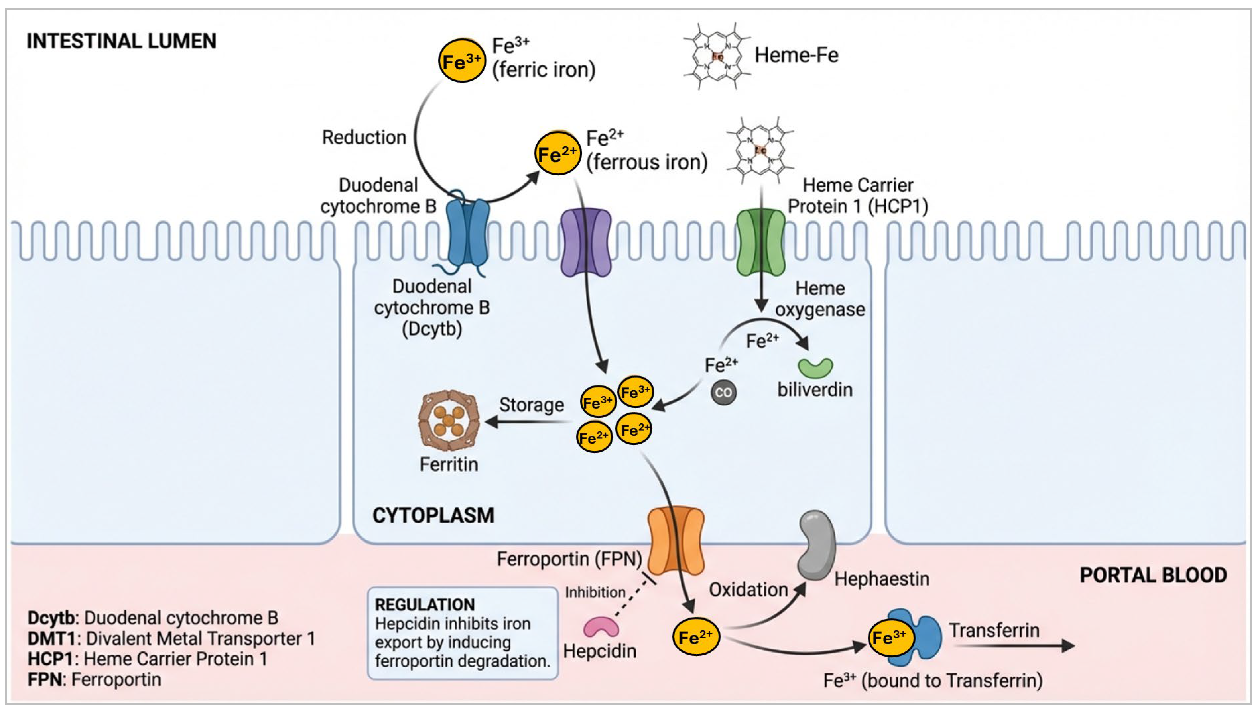- Morgan, E.H.; Oates, P.S. Mechanisms and regulation of intestinal iron absorption. Blood Cells Mole. Dis. 2002, 29, 384–399. [Google Scholar] [CrossRef]