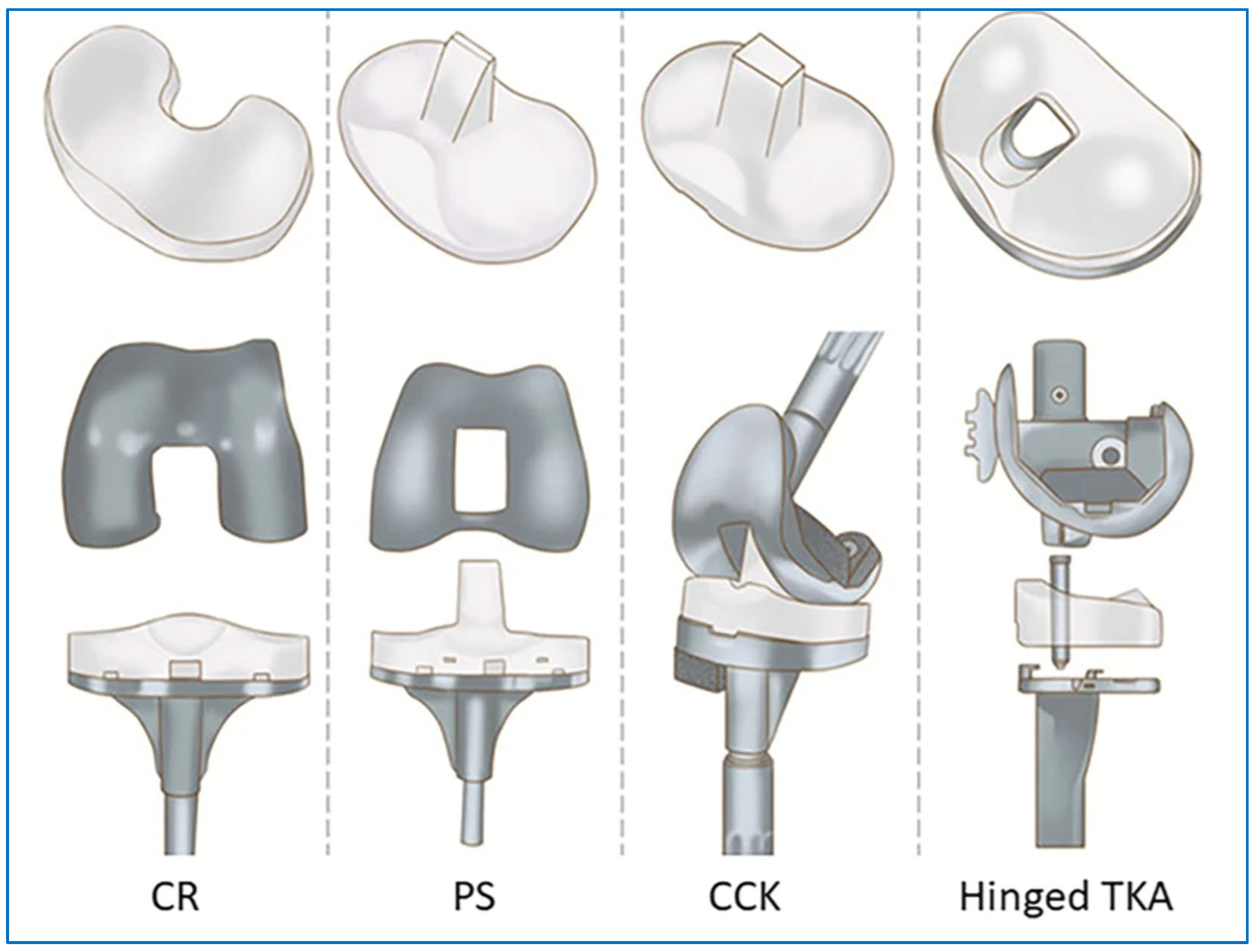 The surgical techniques have been refined by experience with liner failures, with emphasis on accurate alignment and soft tissue balancing. Improvements in polyethylene processing, particularly with highly cross-linked materials, have reduced wear. Follow-up and imaging on a regular basis are still important for the prevention of major complications.