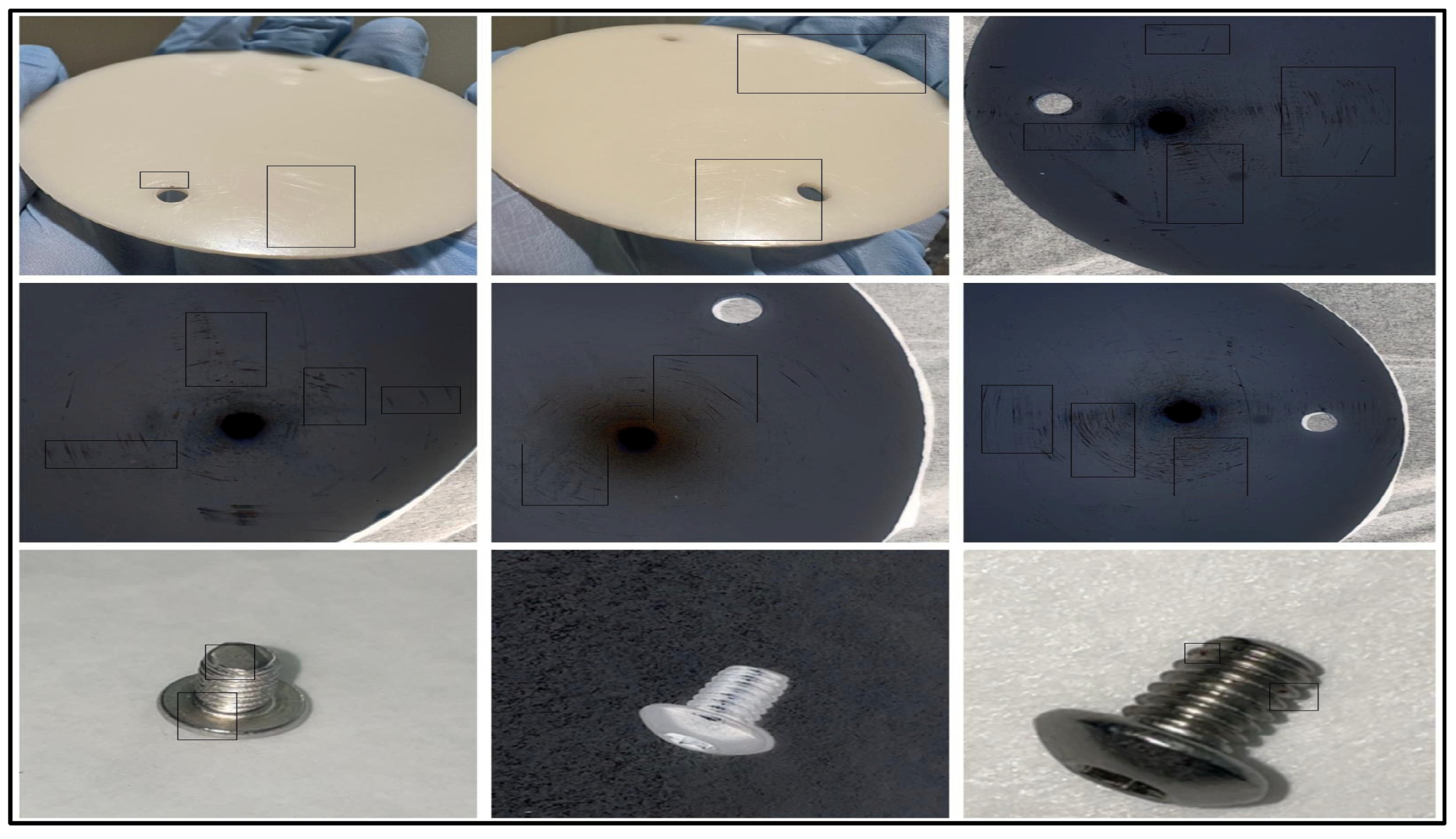36]. Although quadrant-based damage mapping is used, scratches and pits are subjectively interpreted with variability. Multi-modal analysis (mechanical and chemical), population studies of larger numbers, and patient metadata would enable further inclusive knowledge of implant performance and failure risk in the future.