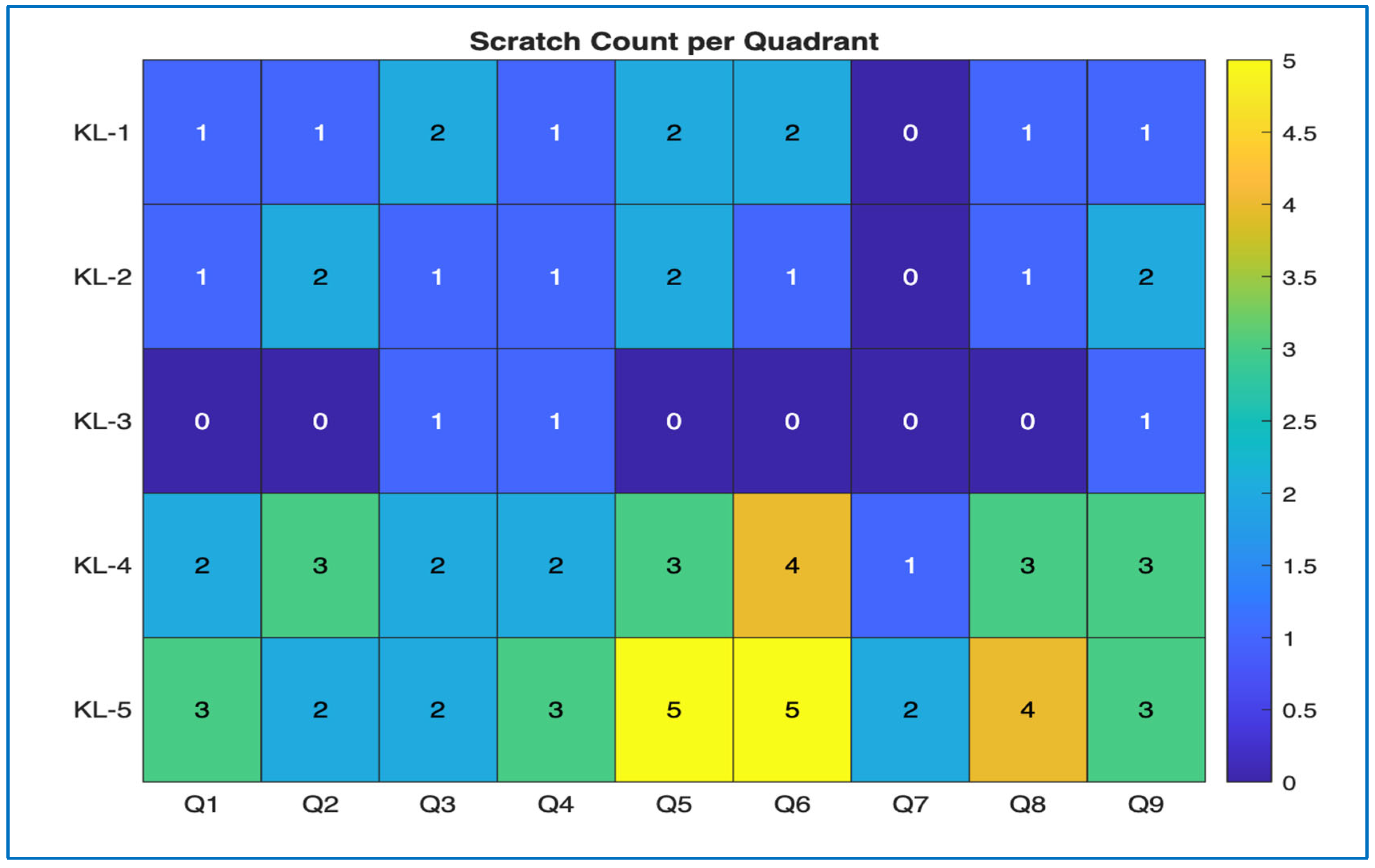 Figure 17 presents a quadrant-wise representation of scratch counts highlighting spatial variations in surface damage.