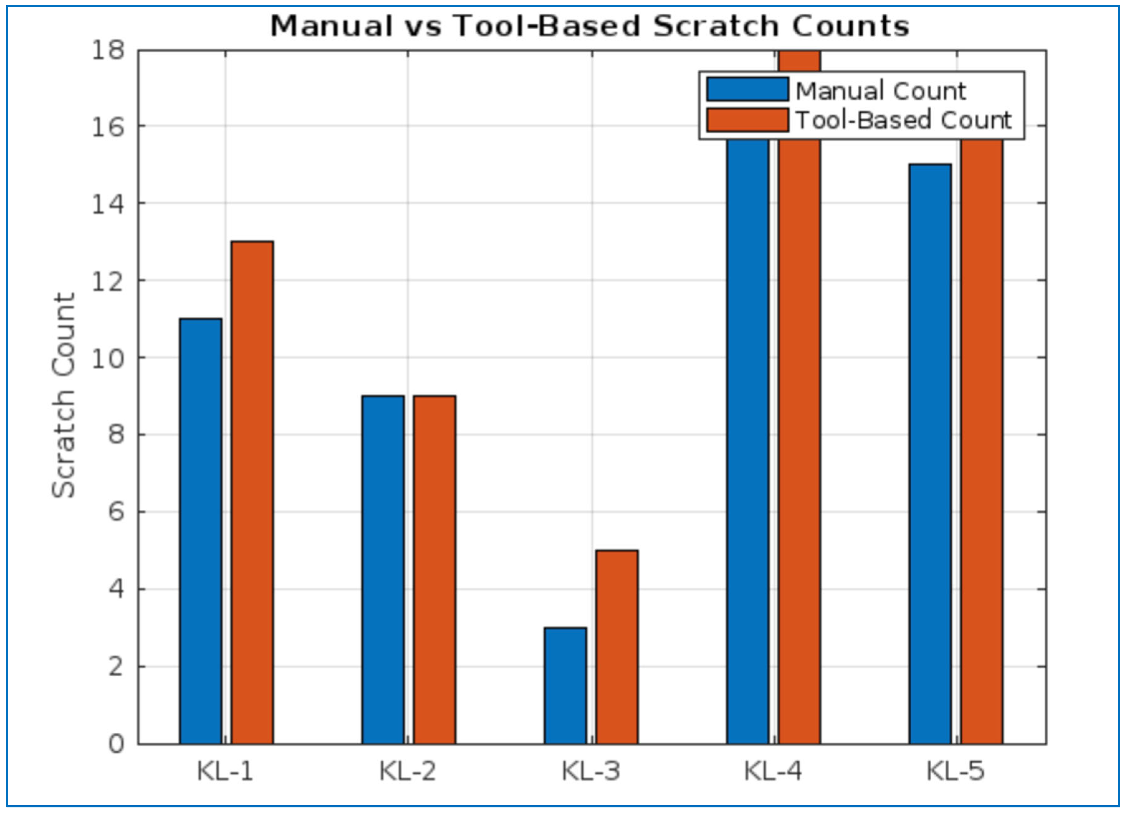 The comparison between manual and tool-based scratch counts is illustrated in