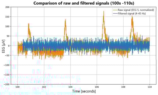 Comparative analysis of raw and filtered EEG signals.