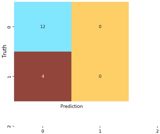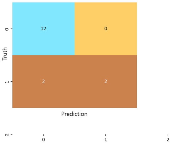 For the multilayer perceptron (MLP) (Figure 5), predictions were more evenly distributed across the non-anxious and moderate categories. The model achieved an overall accuracy of 87.5%, with low false-positive and false-negative rates for both predicted classes. Similar to logistic regression, the MLP did not classify any severe-anxiety instances. Nevertheless, the consistency and balance of predictions demonstrate that the network captured meaningful nonlinear patterns that differentiate between non-anxious and moderate anxiety levels.