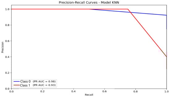 Precision–Recall (PR) curve illustrating classification performance and the trade-off between precision and recall for the K-Nearest Neighbors (KNN) model.