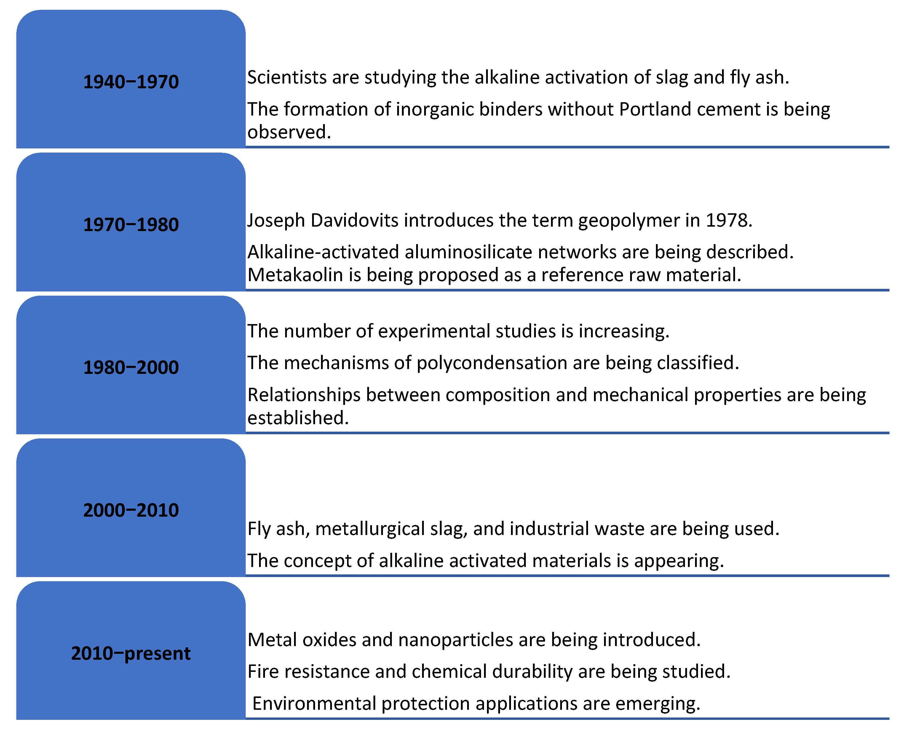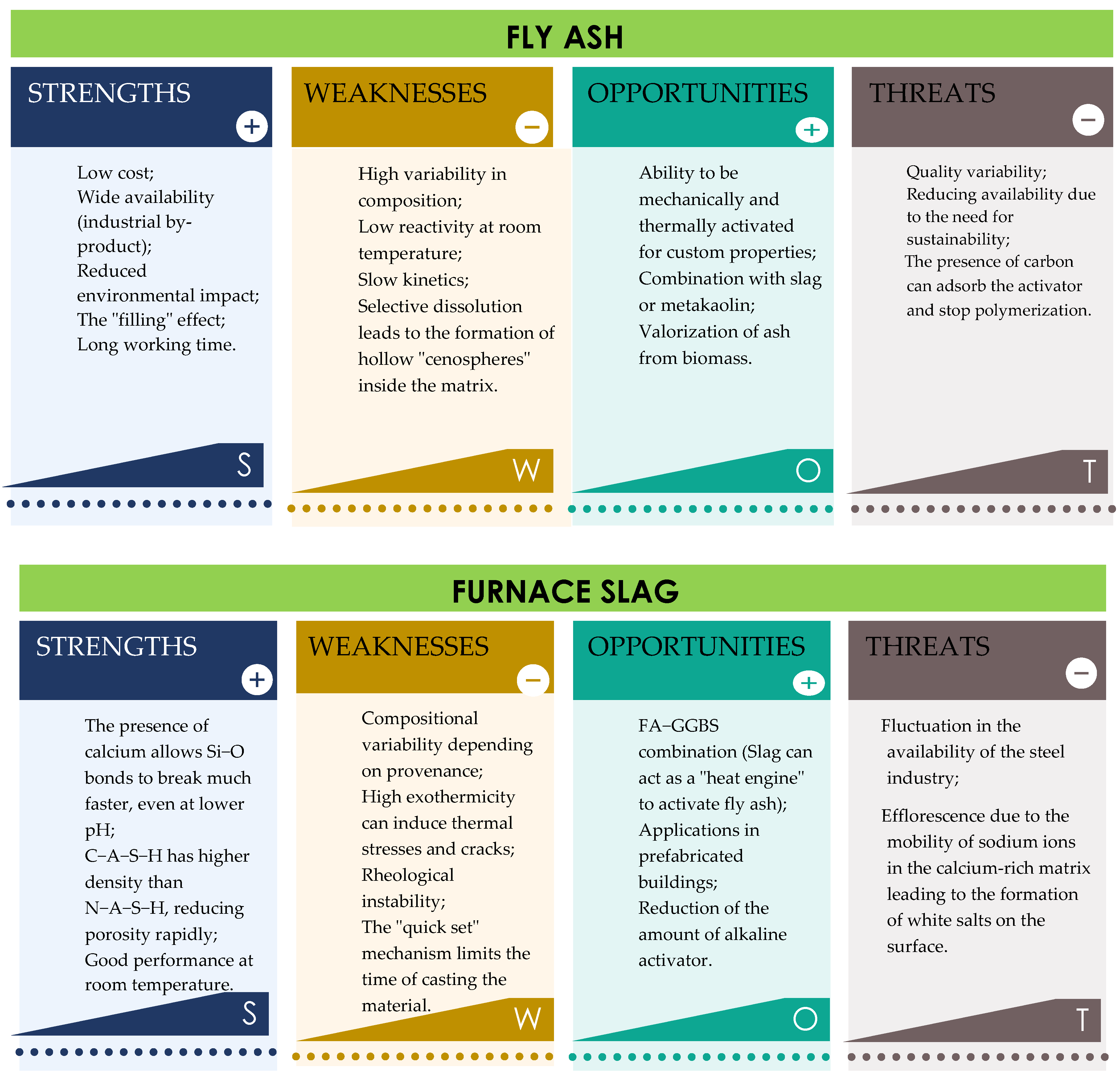 - Kumar, S.G.K.M.; Kinuthia, J.M.; Oti, J.; Adeleke, B.O. Geopolymer Chemistry and Composition: A Comprehensive Review of Synthesis, Reaction Mechanisms, and Material Properties—Oriented with Sustainable Construction. Materials 2025, 18, 3823. [Google Scholar] [CrossRef] [PubMed]