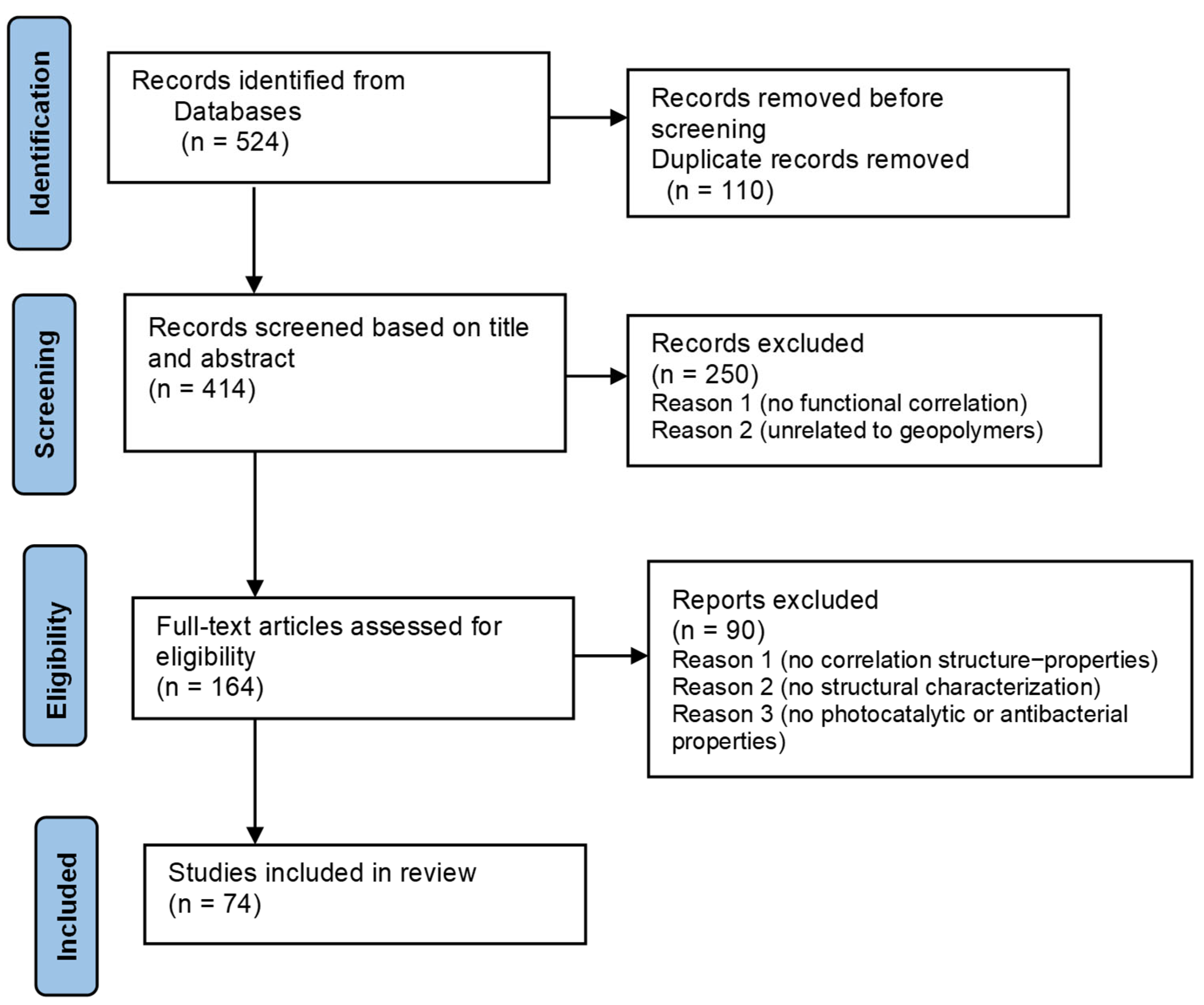 | Geopolymer nanocomposites | Functional roles treated fragmentarily | Correlates additive–matrix interaction with photocatalytic and antibacterial efficiency | [30] |