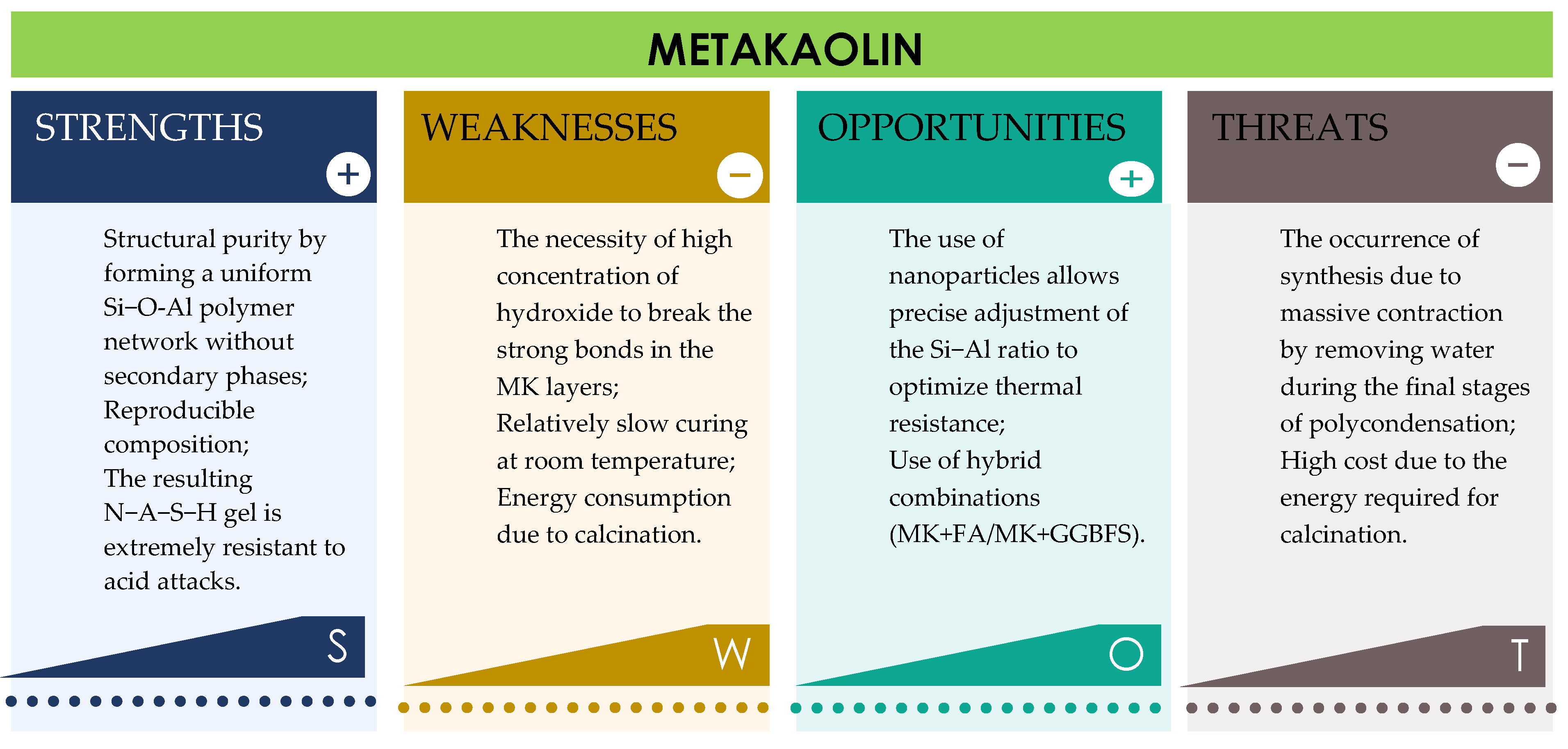 - Long-Term Durability: Research into the very long-term durability (over 10–20 years) of MK–GP hardened at room temperature is needed to enhance confidence in structural applications.