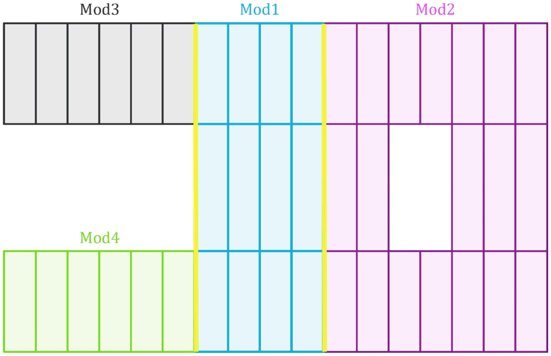![]() | Two expansion joints divide the building into four modules. |