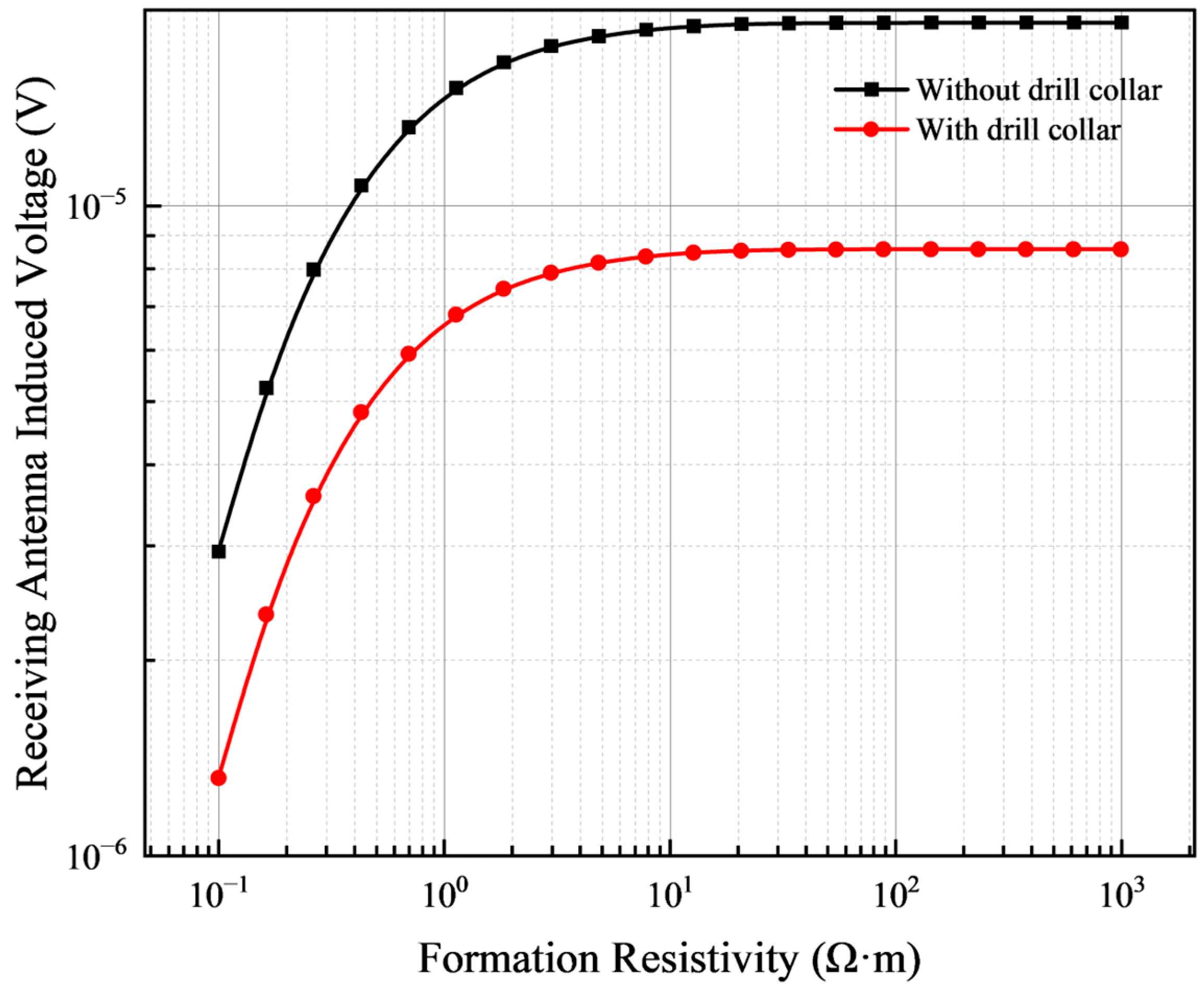 - Liu, C.R. Theory of Electromagnetic Well Logging; Elsevier: Amsterdam, The Netherlands, 2017; ISBN 9780128040089. [Google Scholar]
