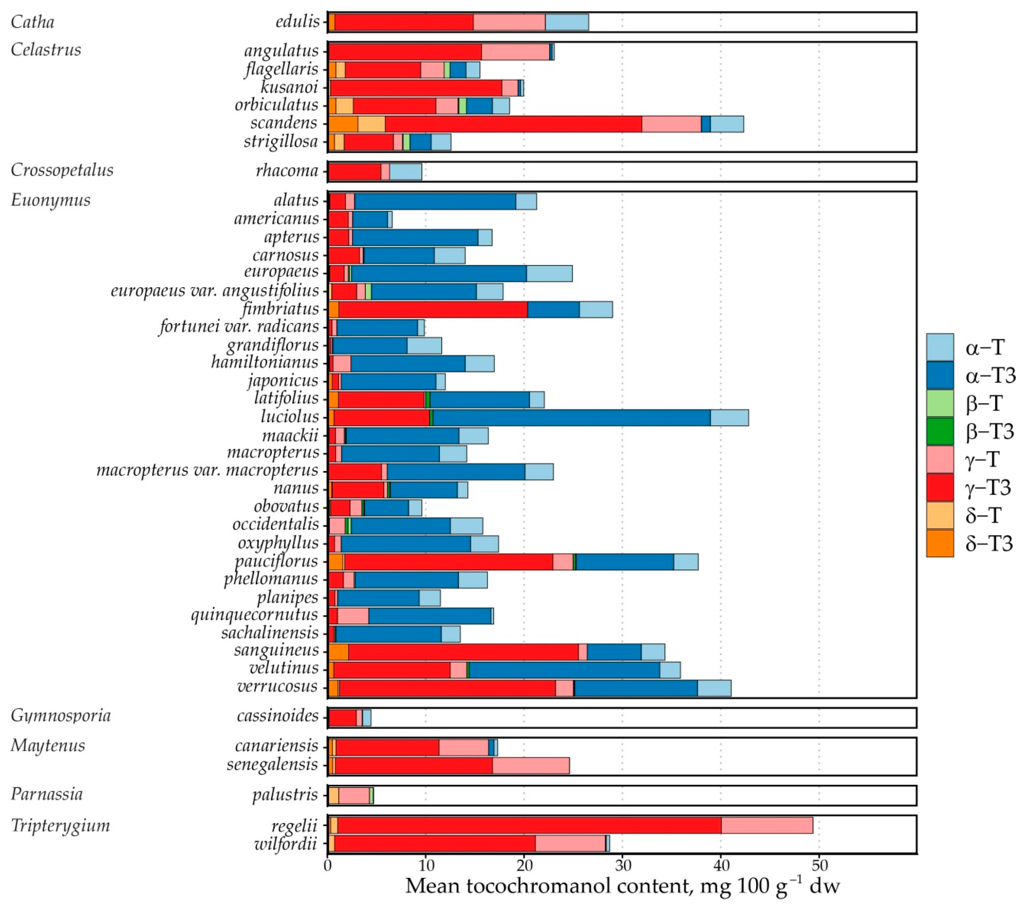 Tocotrienol Dominance in Celastraceae Family Species’ Seeds: Phylogenetic Patterns