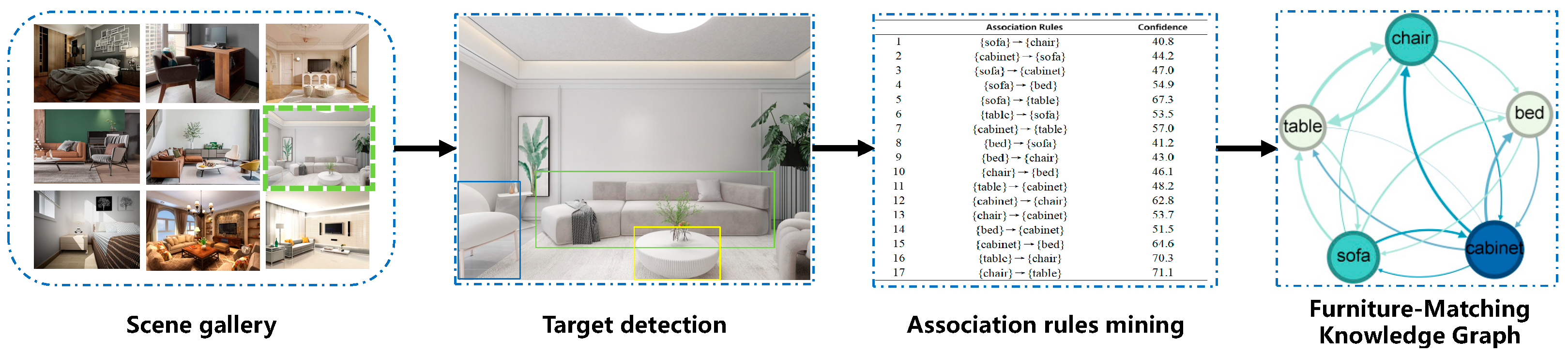 | 2 | {cabinet} → {sofa} | 44.2 |