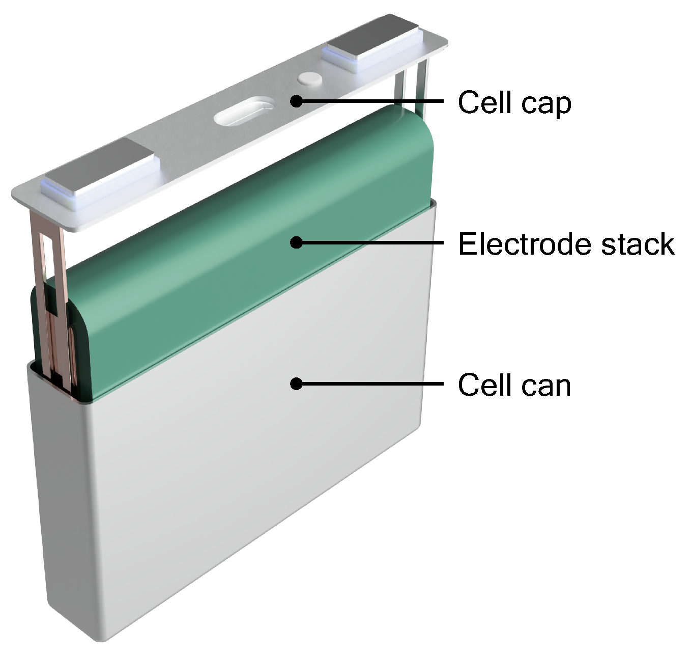 3]. As demand for EVs grows, advancements in battery cell production are important for improving cost, enhancing resource efficiency, and increasing production throughput. One component of a battery cell that is not directly associated with the cell as a chemical–electrical energy generator is the cell housing. Prismatic battery cell housings consist of a can and a cap assembly. The cap seals the cell and provides electrical connections (terminals), while the can encloses the internal components (electrode stack and electrolyte), ensuring structural integrity (see