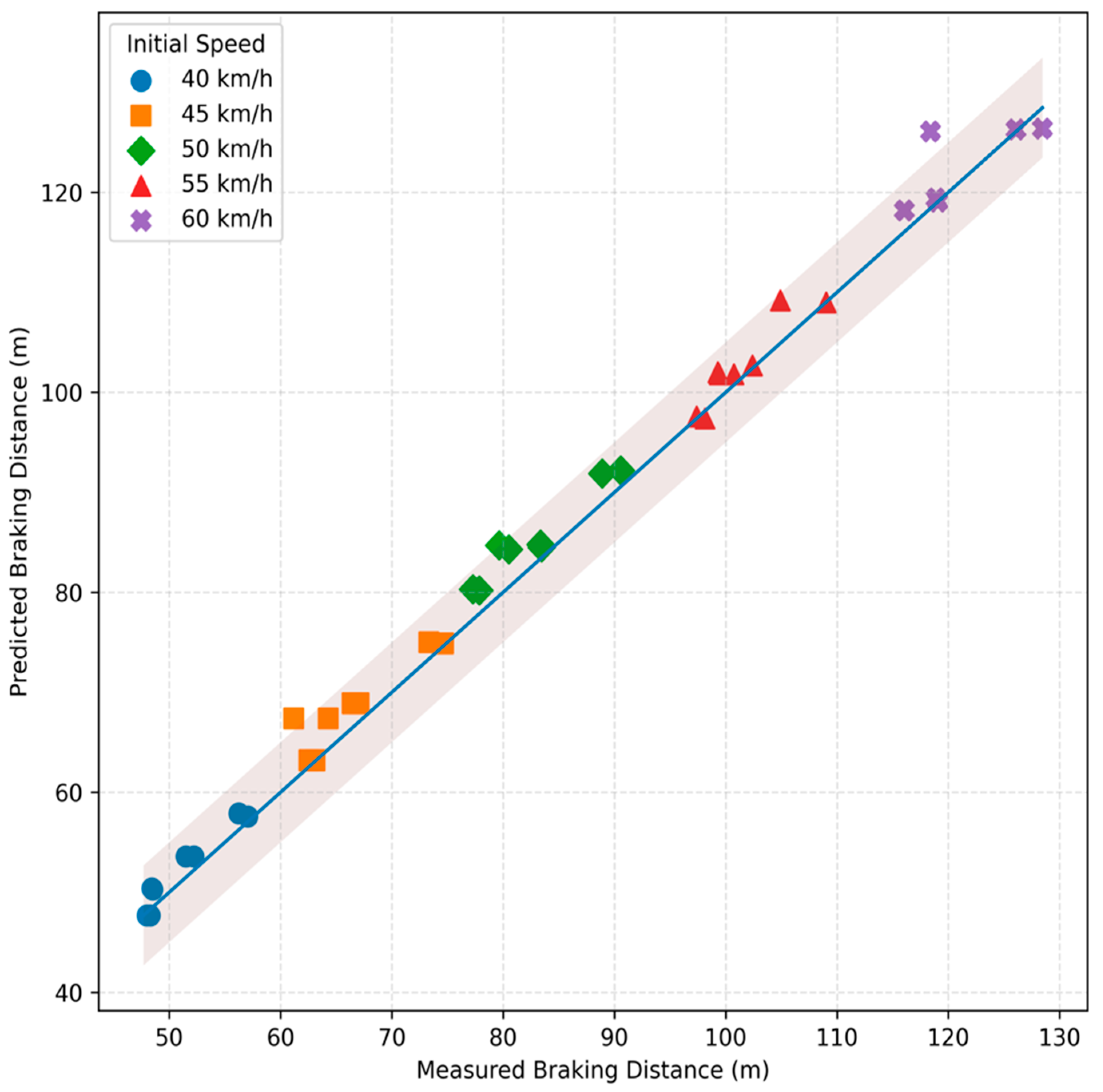 3.2. Predicted vs. Measured Stopping Distance