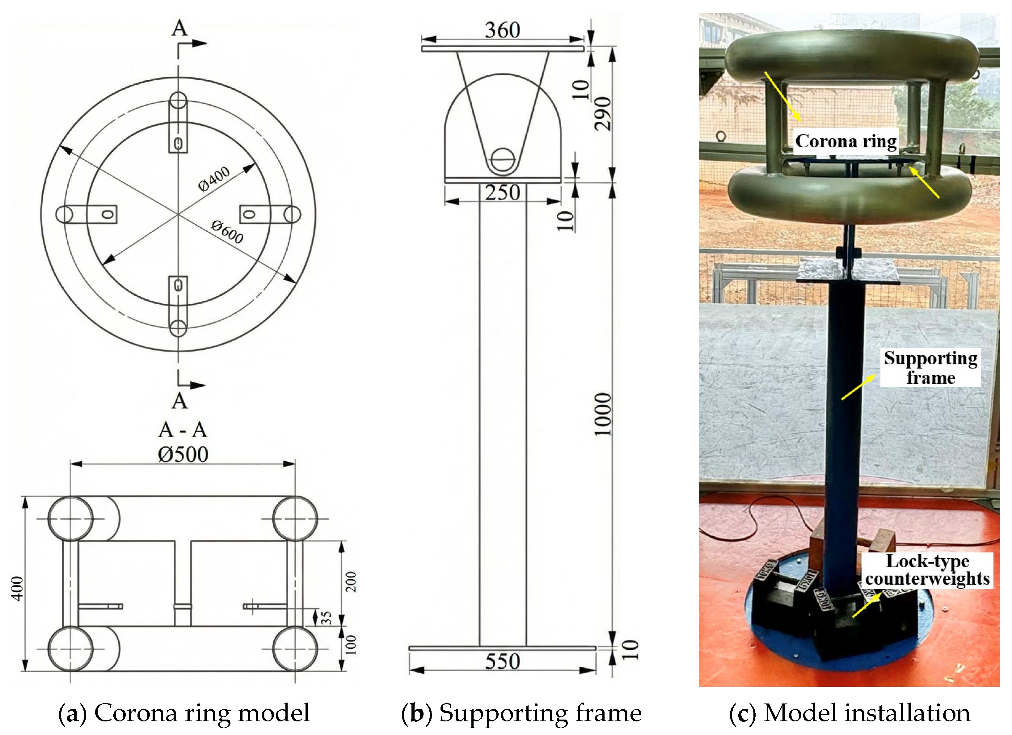 - Khajavi, M.; Bagheri, S.; Shemshadi, A. Optimal design of corona ring in composite insulator considering the effects of tower structure, conductor, hardware and mutual phases. Electr. Power Syst. Res. 2023, 223, 109686. [Google Scholar] [CrossRef]