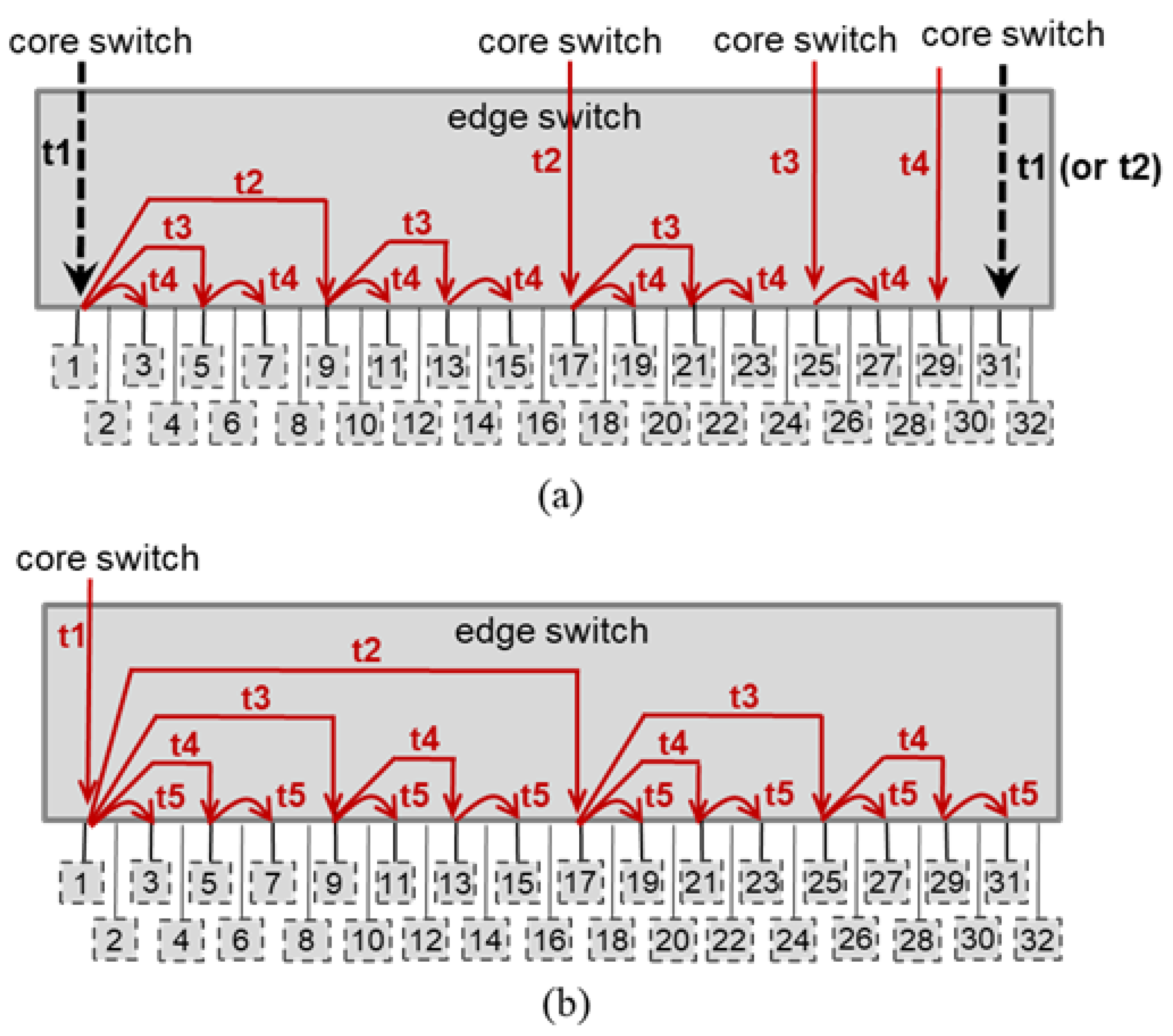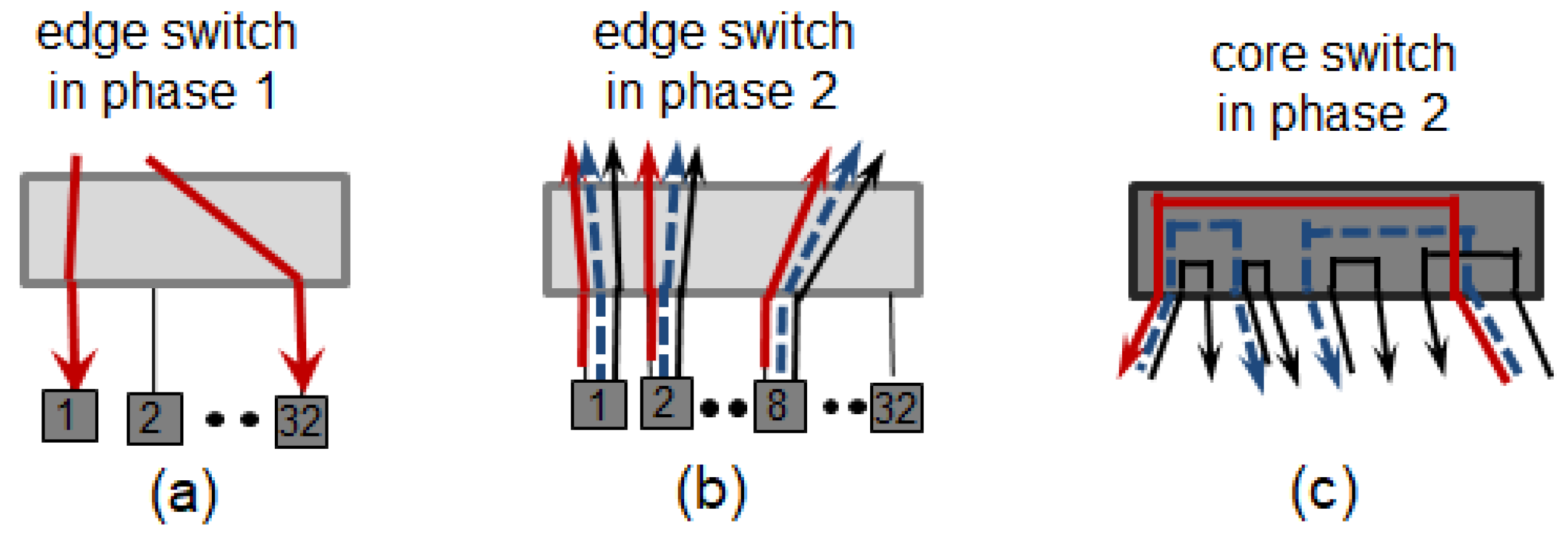 - Lonare, A.; Gulhane, V. Addressing Agility and Improving Load Balance in Fat-tree Data Center Network—A Review. In Proceedings of the International Conference on Electronics and Communication Systems (ICECS), Coimbatore, India, 26–27 February 2015; Volume 2, pp. 965–971. [Google Scholar]
