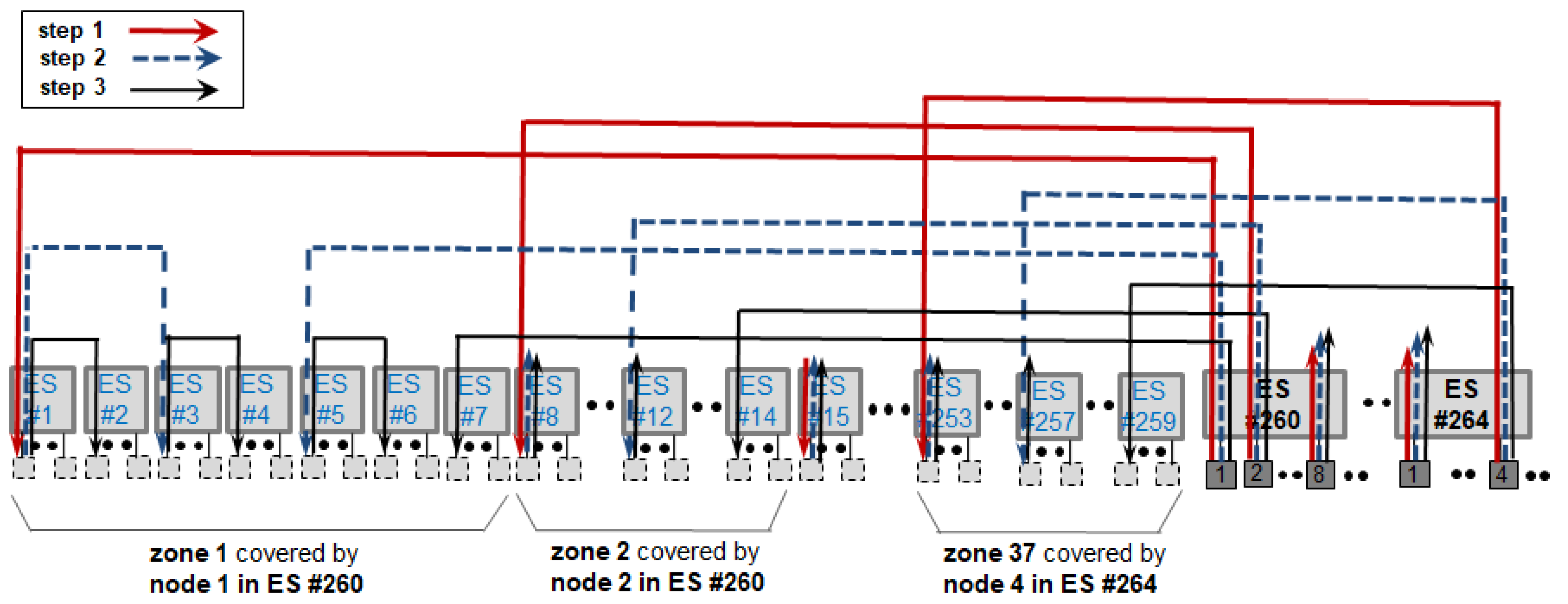 | t1 | edge switch 260, 261, 262 | edge switch 263, 264 |