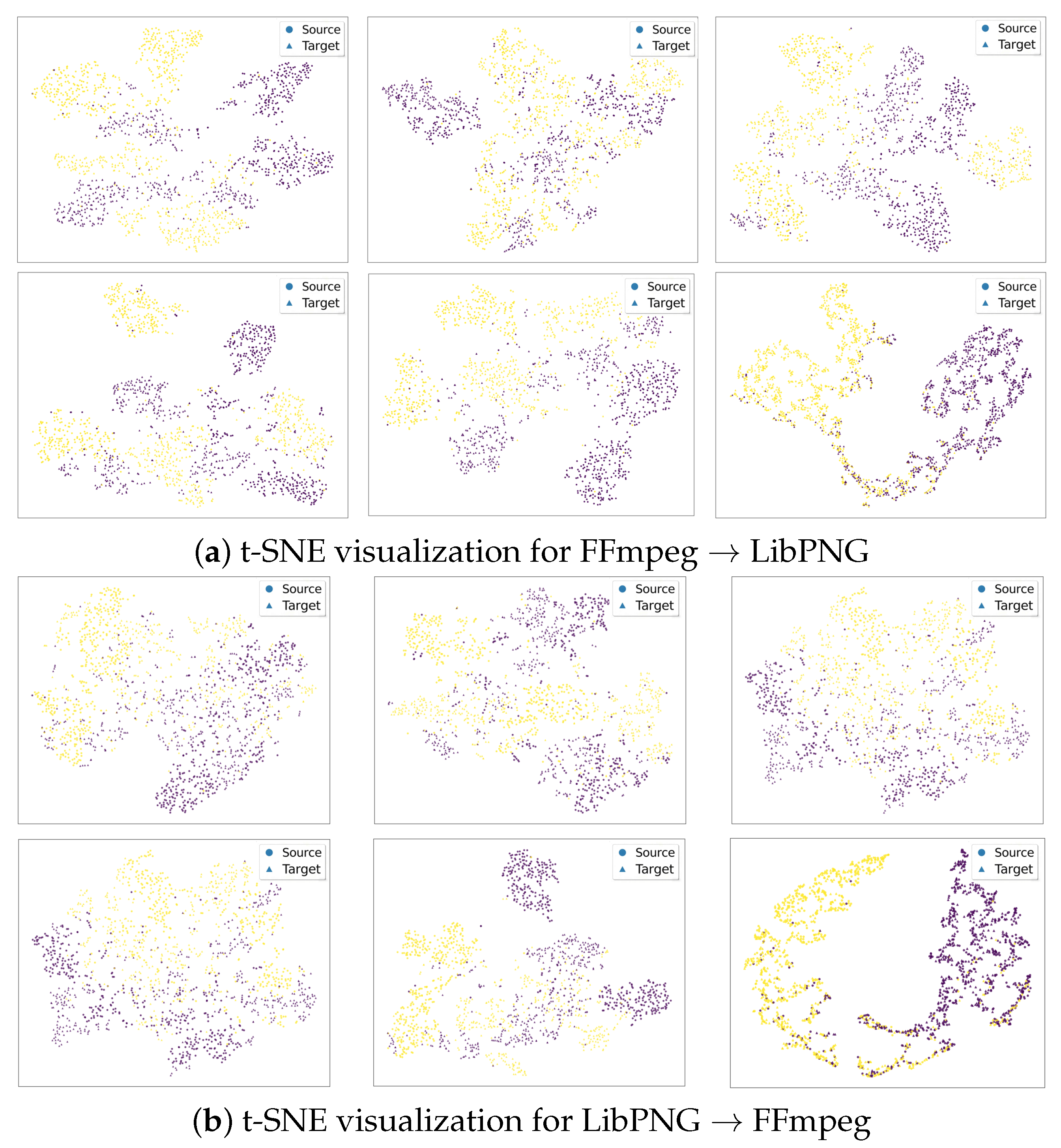 In this experiment, we aim to demonstrate the transfer learning capability of the proposed method for imbalanced cross-domain software vulnerability detection. We use FFmpeg, a multimedia application dataset, as the source domain and LibPNG, an image processing application dataset, as the target domain. It is noteworthy that the labels of the target domain dataset are hidden during training and are only revealed during the testing phase to evaluate the model’s performance.