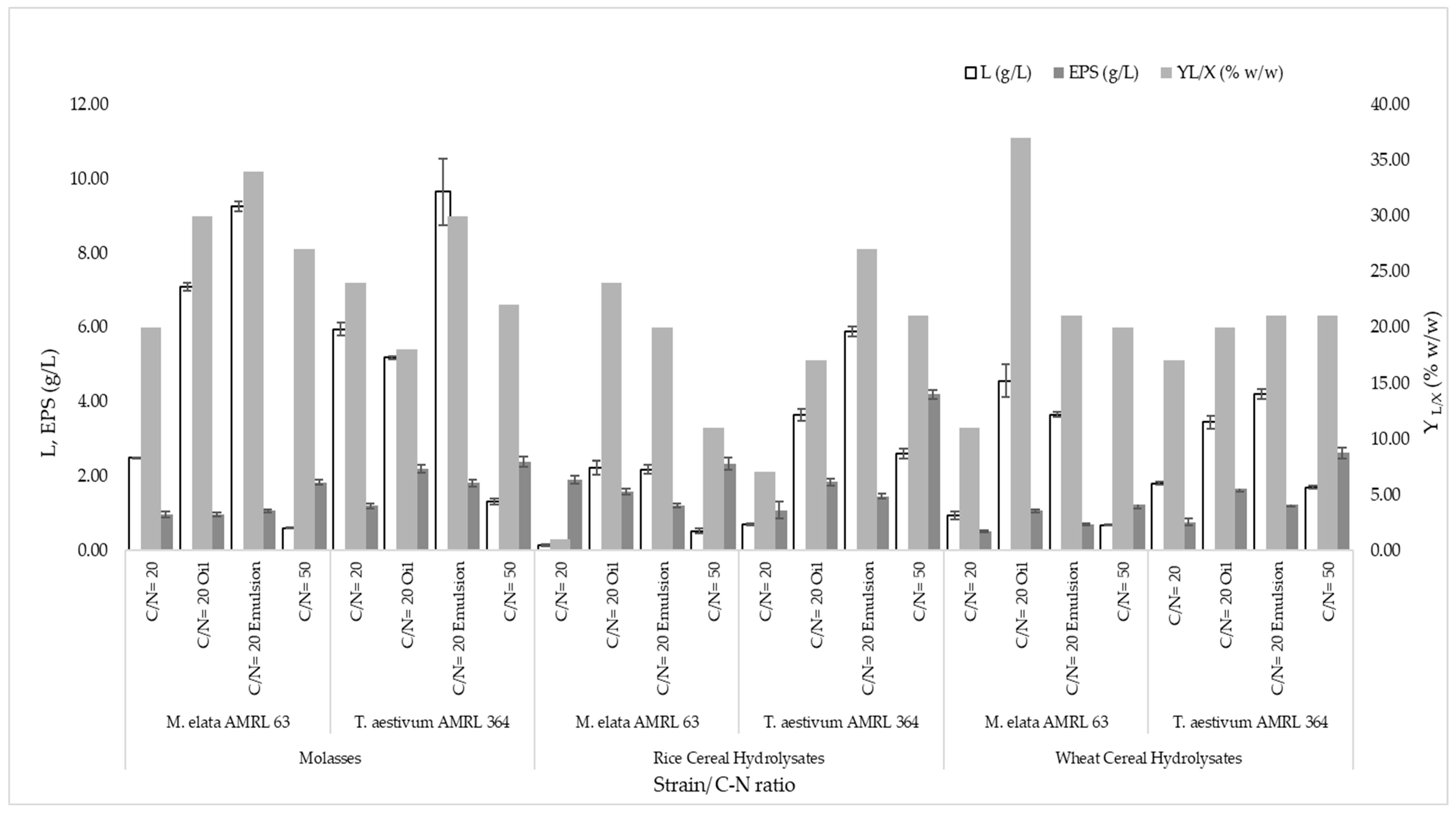 - Tsakona, S.; Kopsahelis, N.; Chatzifragkou, A.; Papanikolaou, S.; Kookos, I.K.; Koutinas, A.A. Formulation of fermentation media from flour-rich waste streams for microbial lipid production by Lipomyces starkeyi. J. Biotechnol. 2014, 189, 36–45. [Google Scholar] [CrossRef]