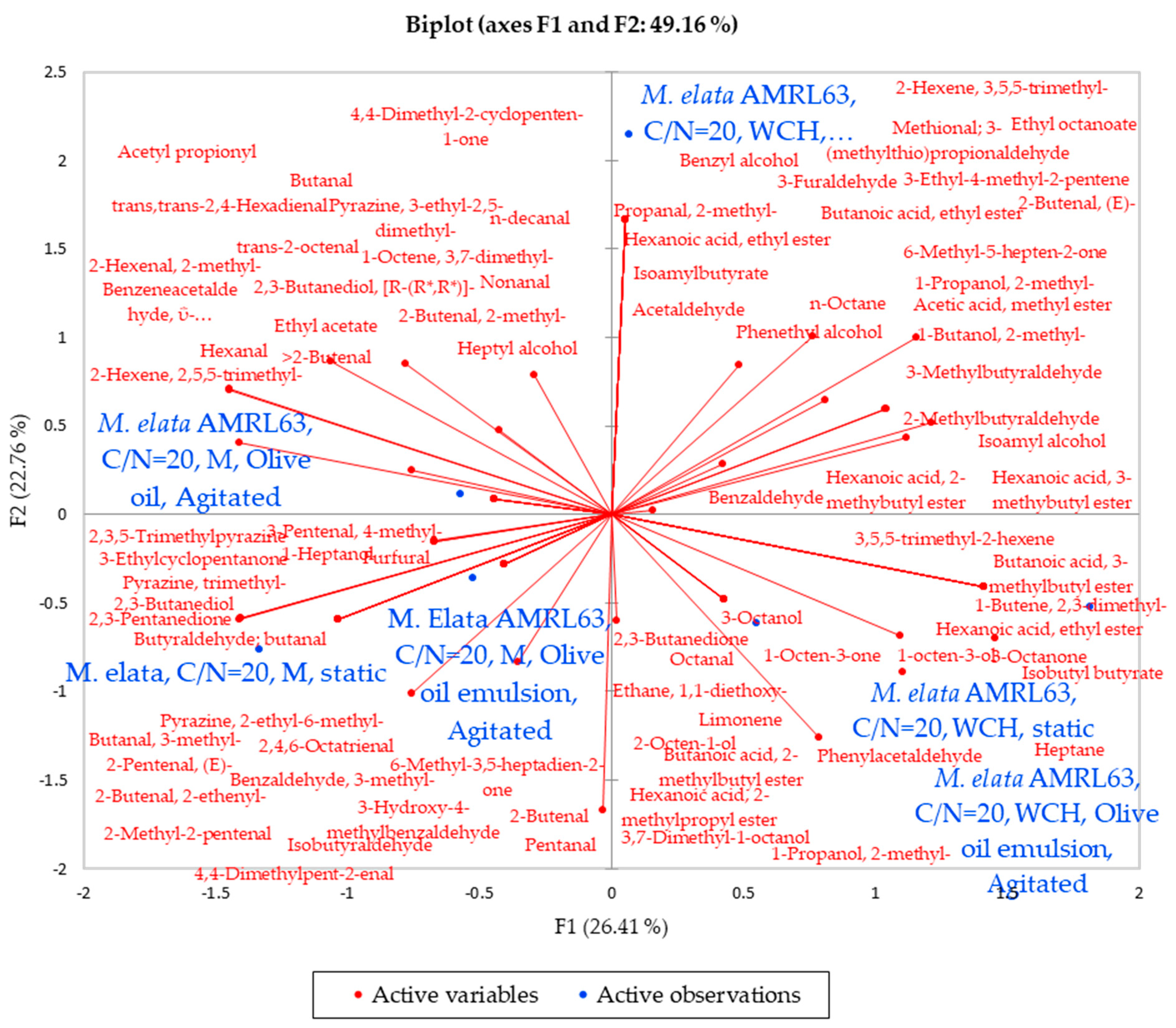 | M. elata AMRL 63 | 20 | Olive oil | M | 11.4 | tr. | tr. | 75.4 | 10.9 | tr. | 1.003 |