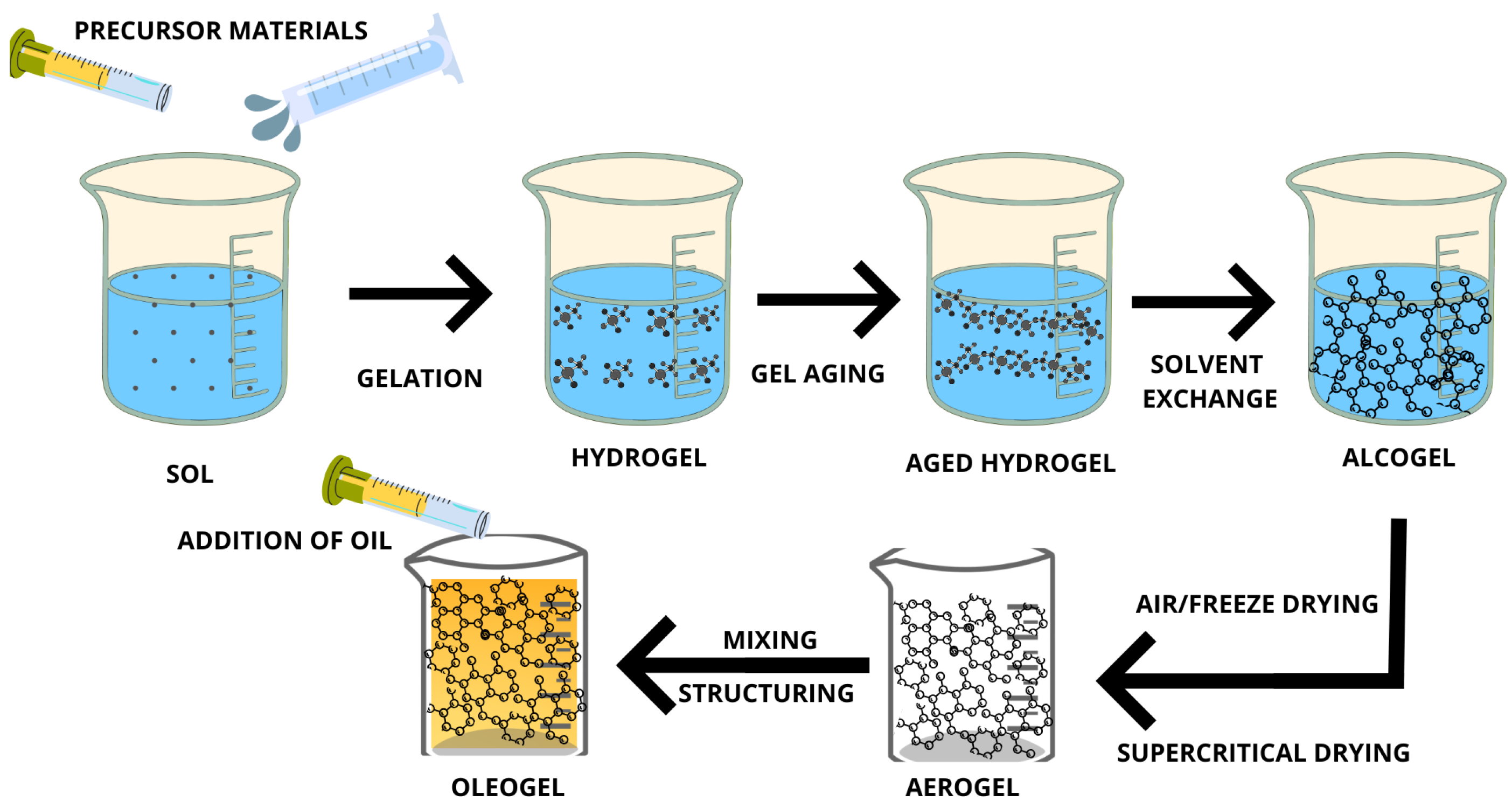 - The structural and functional properties of aerogels and oleogels;