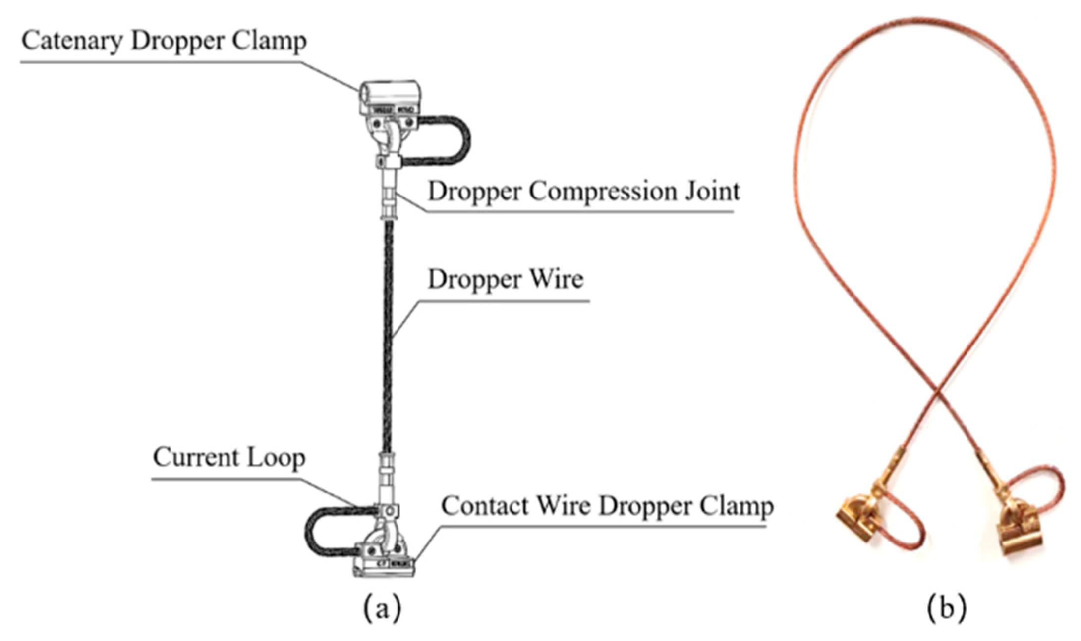 - Chen, L.; Sun, J.; Pan, L.; He, F. Analysis of Dropper Stress in a Catenary System for a High-Speed Railway. Math. Probl. Eng. 2022, 2022, 9663767. [Google Scholar] [CrossRef]