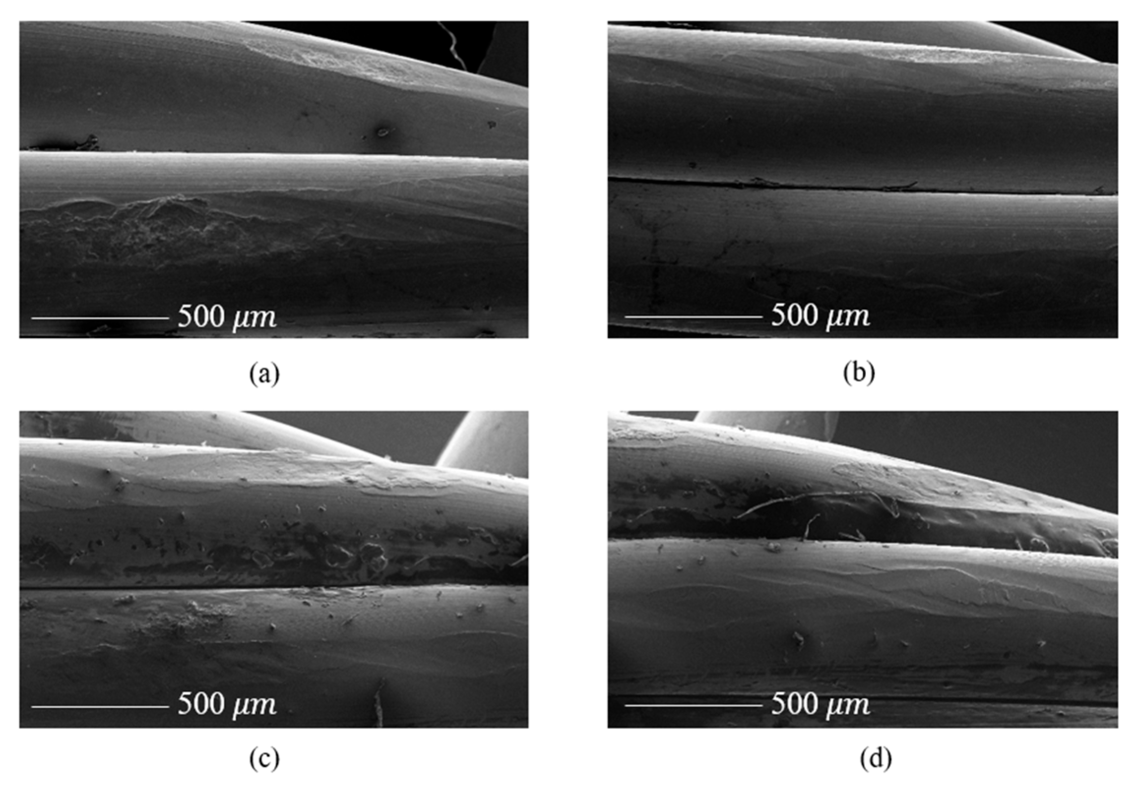 - Cruzado, A.; Hartelt, M.; Wäsche, R.; Urchegui, M.A.; Gómez, X. Fretting wear of thin steel wires. Part 1: Influence of contact pressure. Wear 2010, 268, 1409–1416. [Google Scholar] [CrossRef]