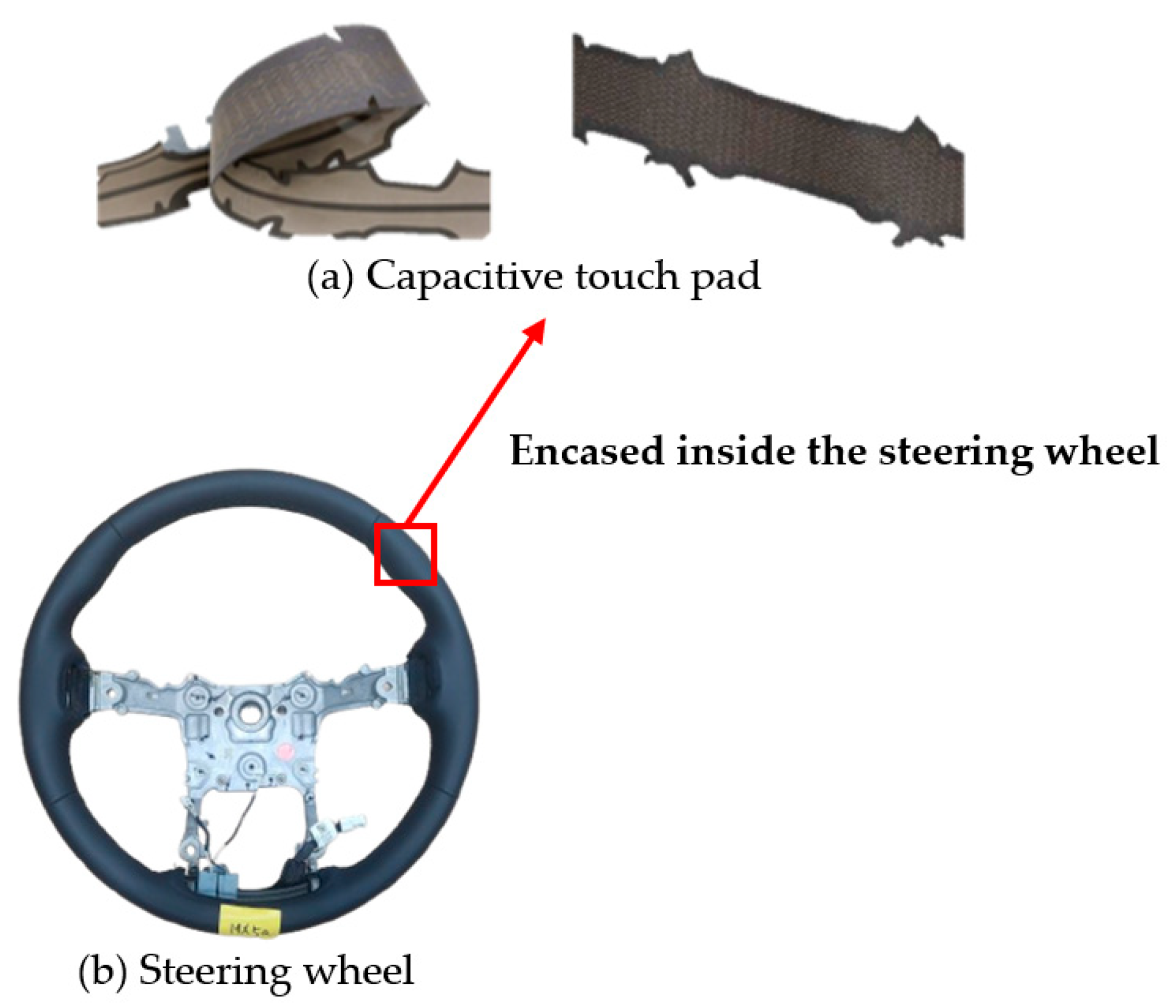 Figure 1, the capacitive touch pad is physically integrated into the steering wheel structure to enable real-time operation.