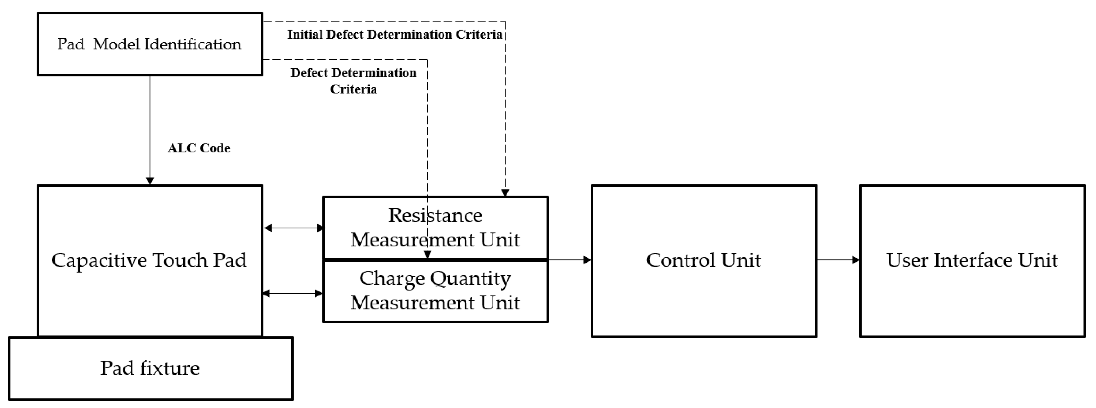. This quantity is then compared with a predefined threshold value to determine whether the touch pad is functioning properly or if there is a defect. However, discrepancies in the amount of adhesive utilized during the manufacturing process can result in alterations to the capacitance value. Consequently, a designated tolerance range has been established to compensate for such variations and ascertain the presence of any defects.