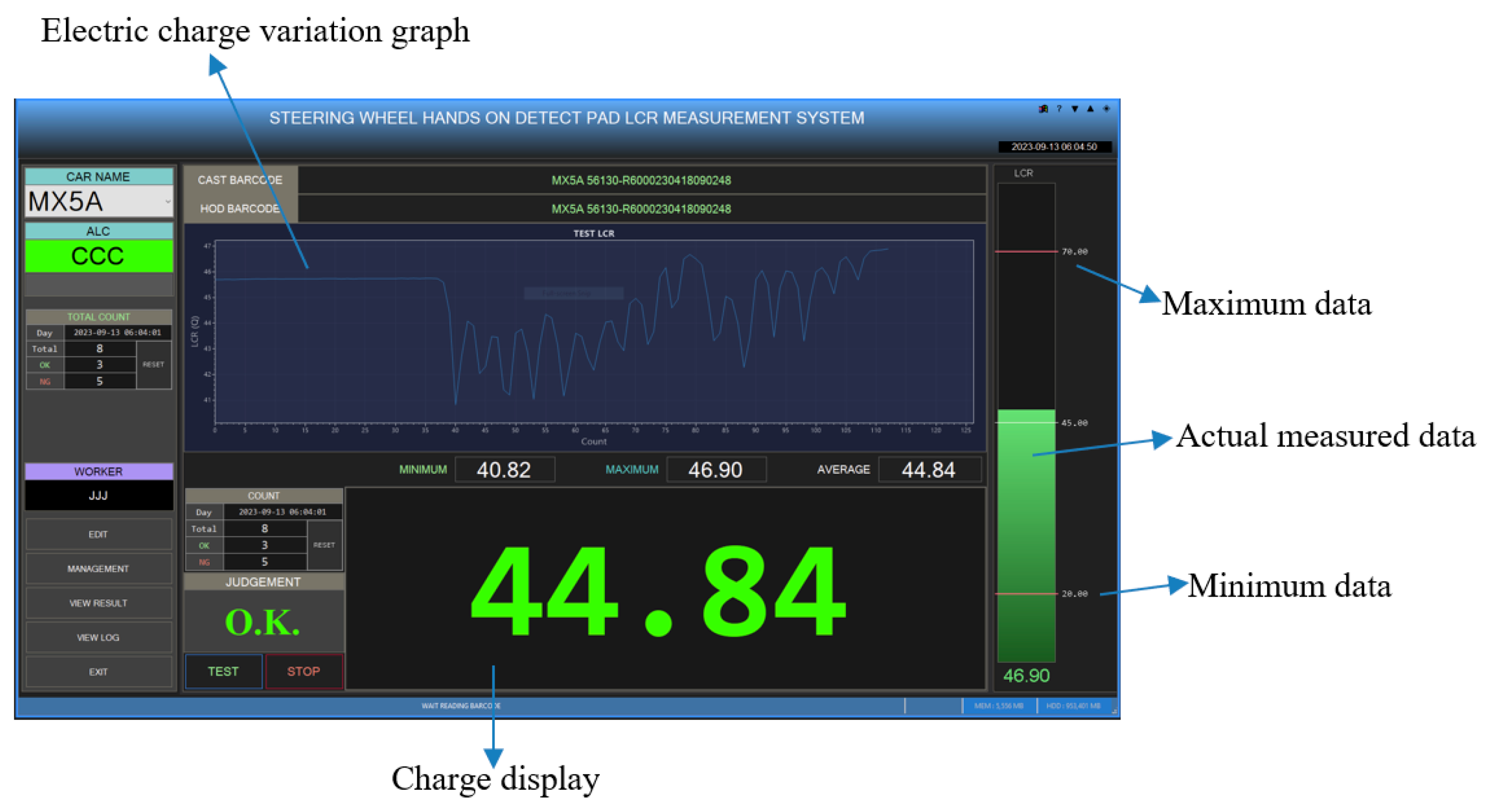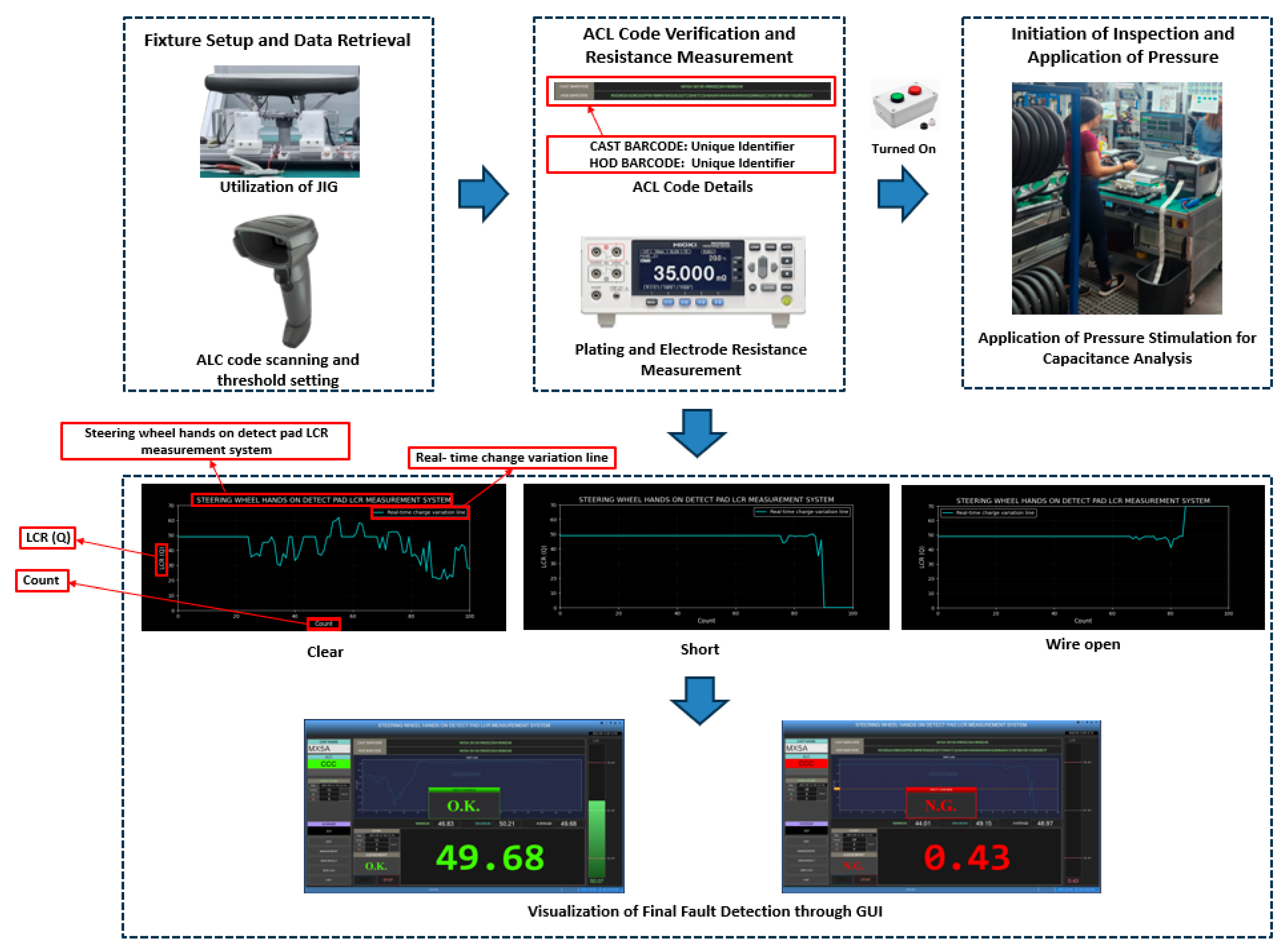 Figure 5. The GUI system displays the measured charge quantity data in a graph and provides warning signals when abnormalities are detected, thereby improving the efficiency of defect detection. The defect detection process is further delineated in