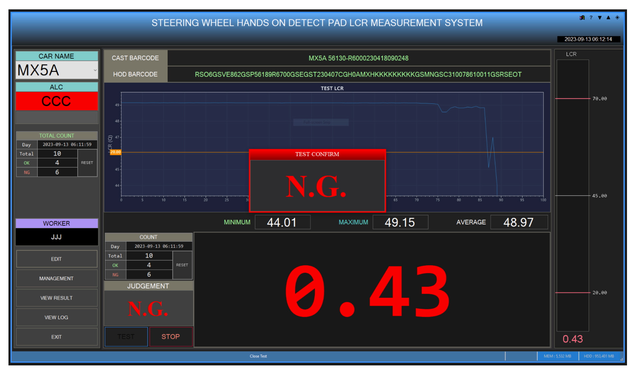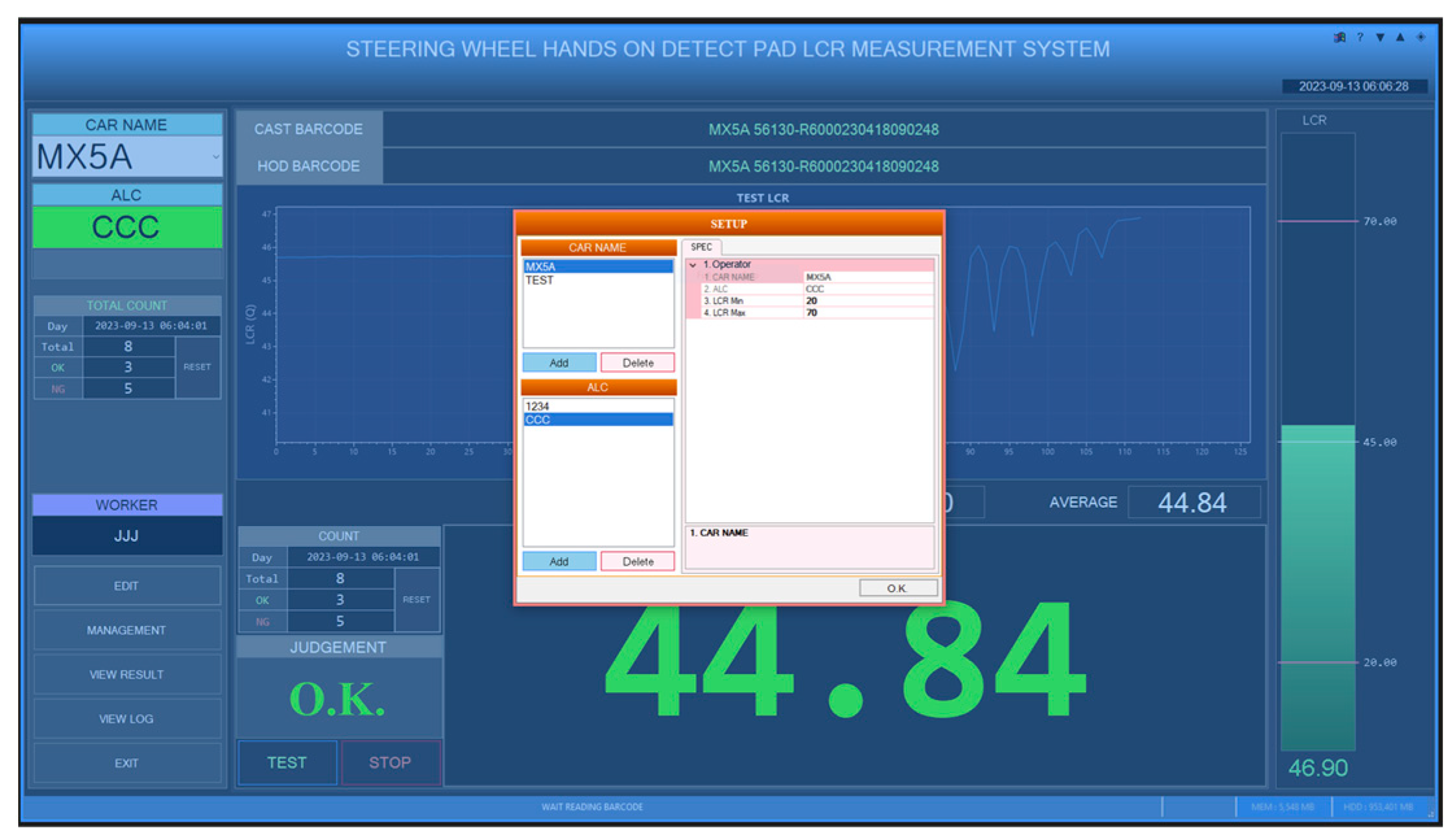 The JIG maintains the touch pad in a fixed position, thereby ensuring a stable measurement environment during repeated tests and minimizing measurement errors. After mounting the product on the JIG, the ALC code is scanned to identify the product name, and the appropriate threshold value is automatically applied to that product. Given that each product exhibits distinct capacitance characteristics due to the presence of electrical noise in the surrounding environment, the ALC code recognition method is employed to retrieve the standard threshold value for each product, thereby enabling a precise inspection. Subsequently, the plating condition and electrode resistance inside the touch pad are measured to determine whether there are any initial defects.